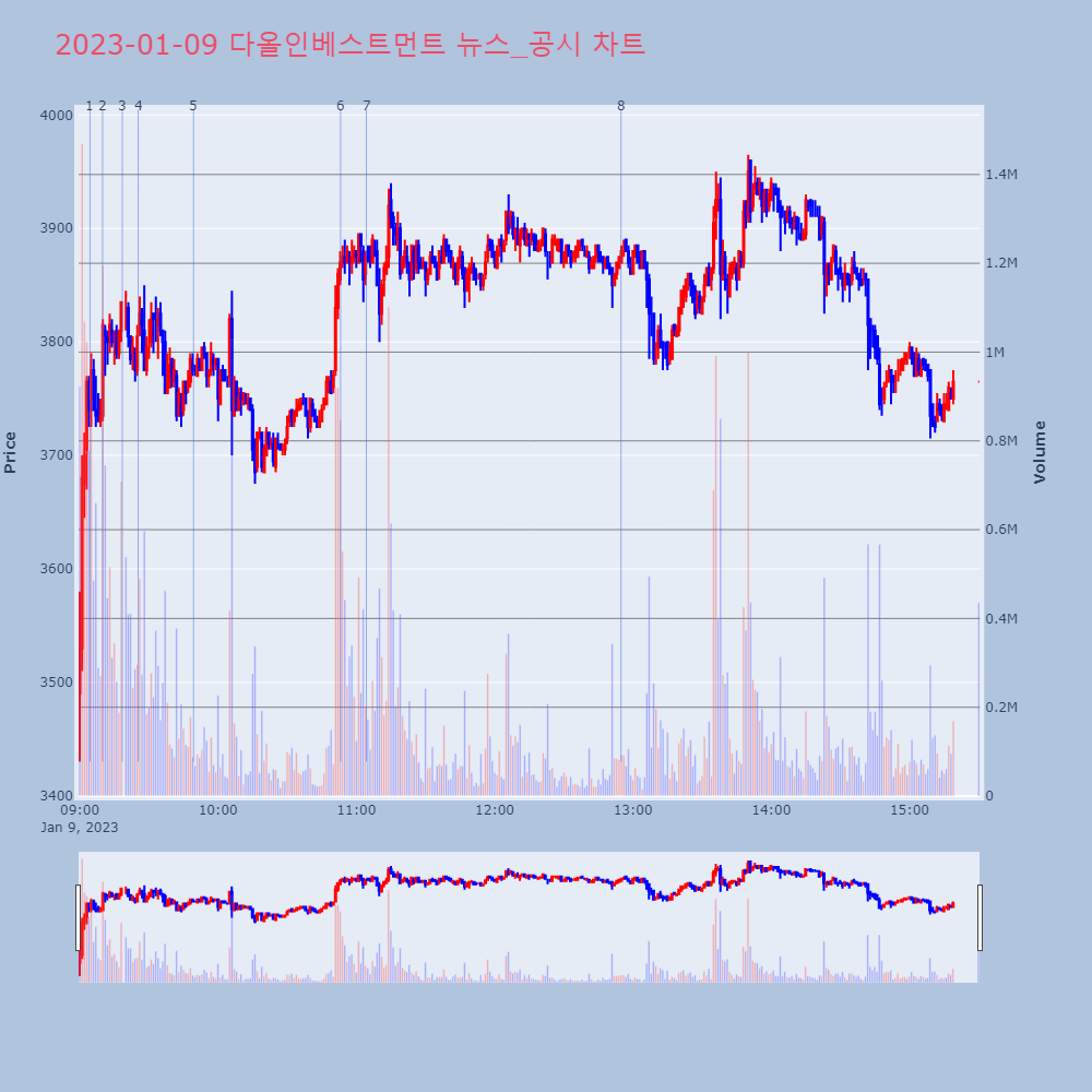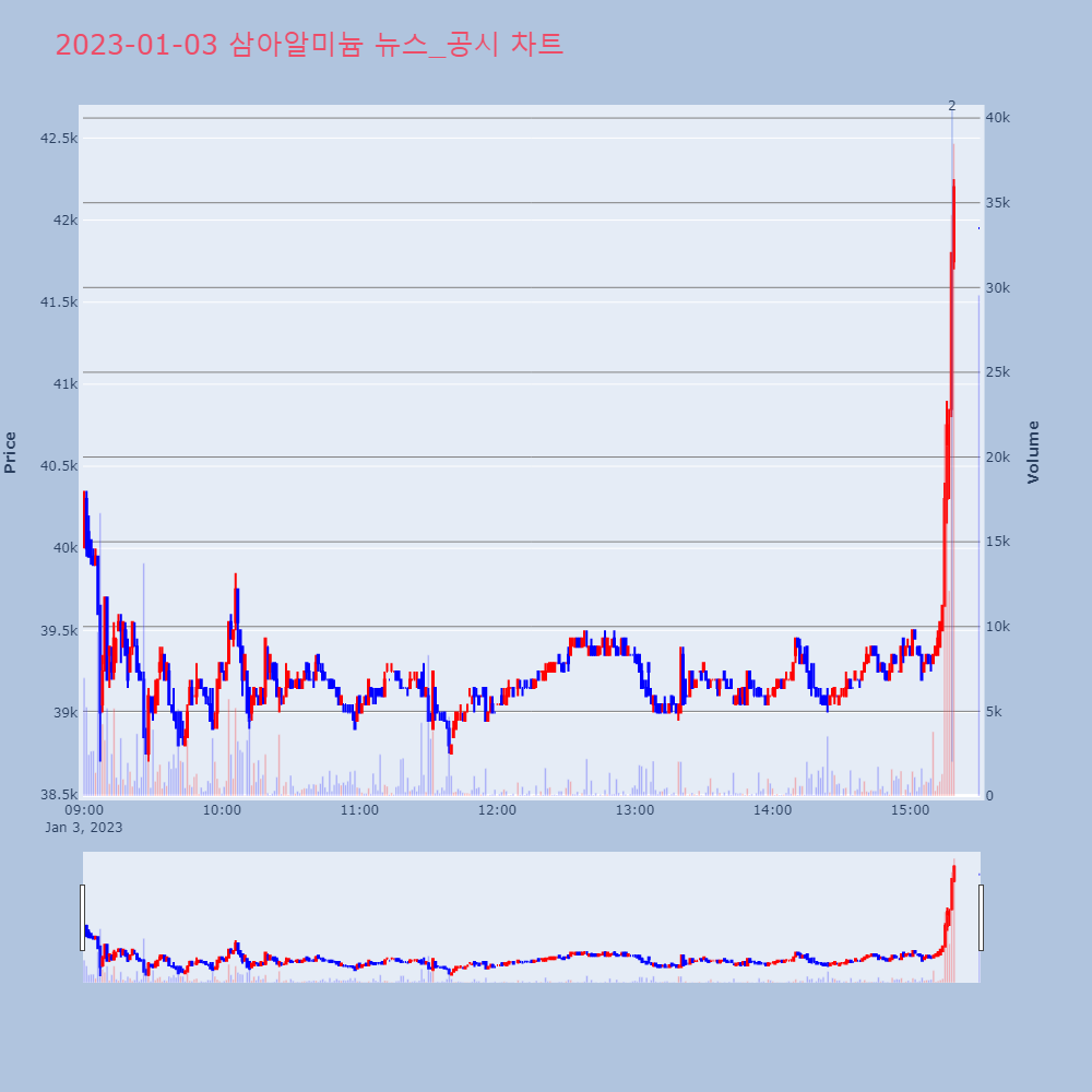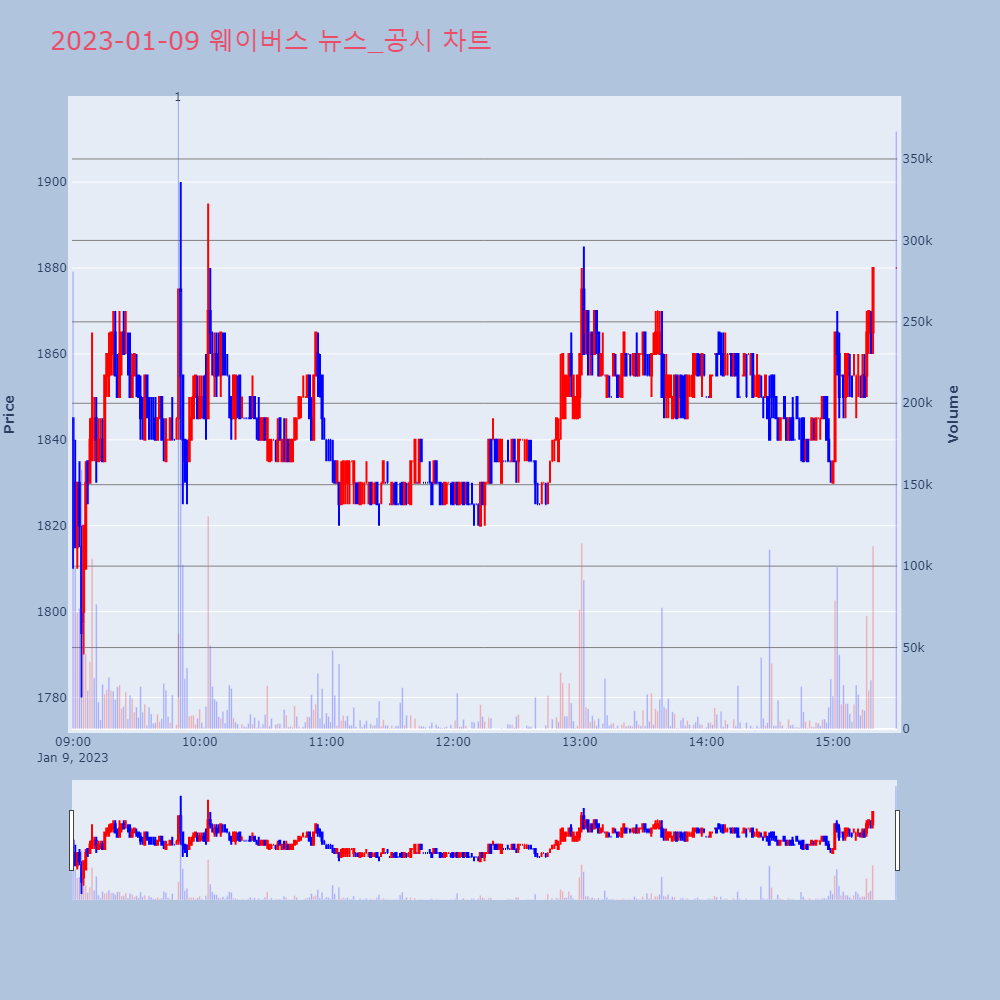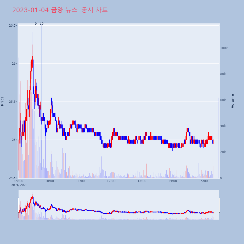 | 3 | 코난테크놀로지, +14.65% VI 발동코난테크놀로지가 VI가 발동했다. 전일 대비 14.65 | 조선경제 | 코난테크놀로지 | 2023-01-25 09:03:14 |
