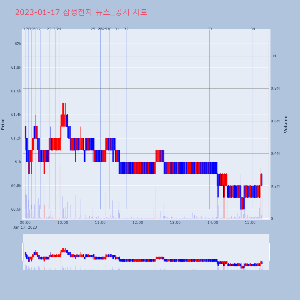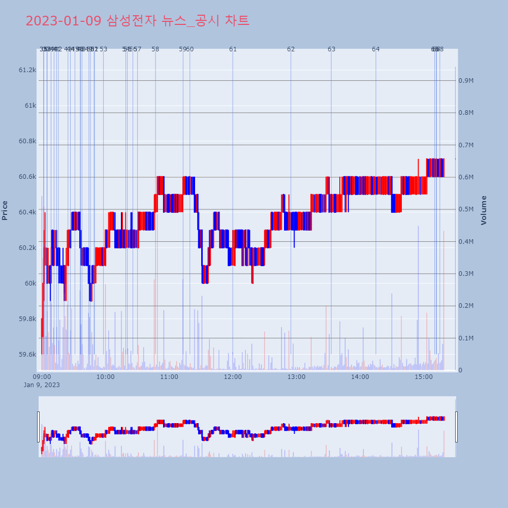 | 2 | 삼성전자(005930) 상승 출발 +2.75%, SK하이닉스 +3.77%, DB하이텍 +2.50%제목 : 삼성전자(005930)상승 출발 +2.75%, | 인포스탁 | 삼성전자 | 2023-01-25 09:01:30 |