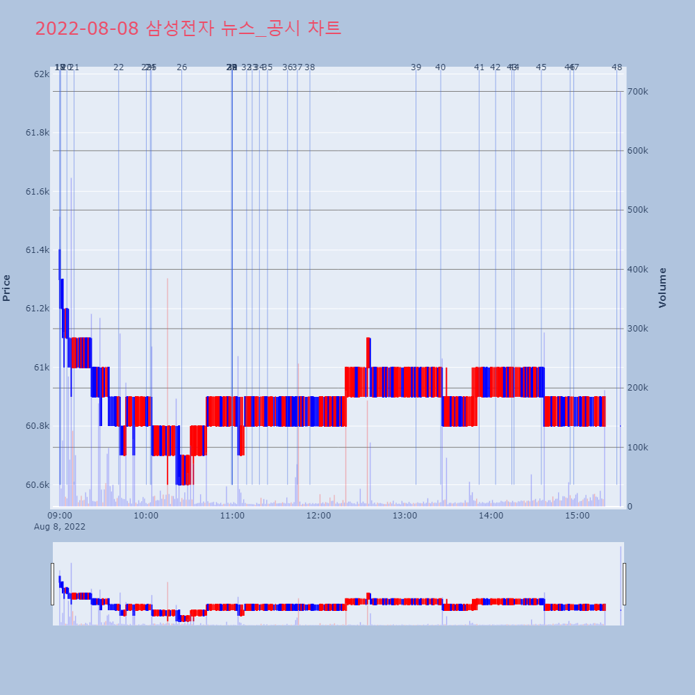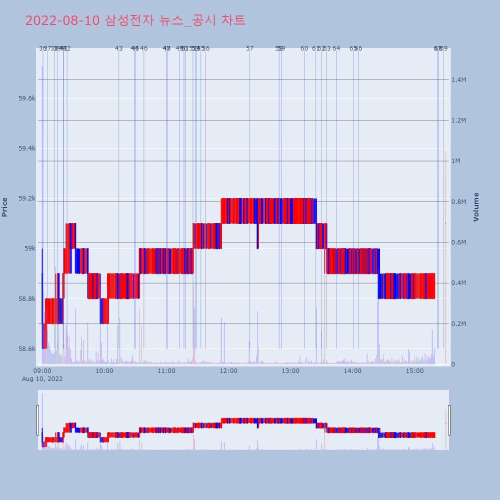 | 54 | [특징주] 삼성전자, 7거래일만에 다시 '5만전자' 추락[특징주] 삼성전자, 7거래일만에 다시 '5만전자' 추 | 연합뉴스 | 삼성전자 | 2022-08-23 15:38:04 |