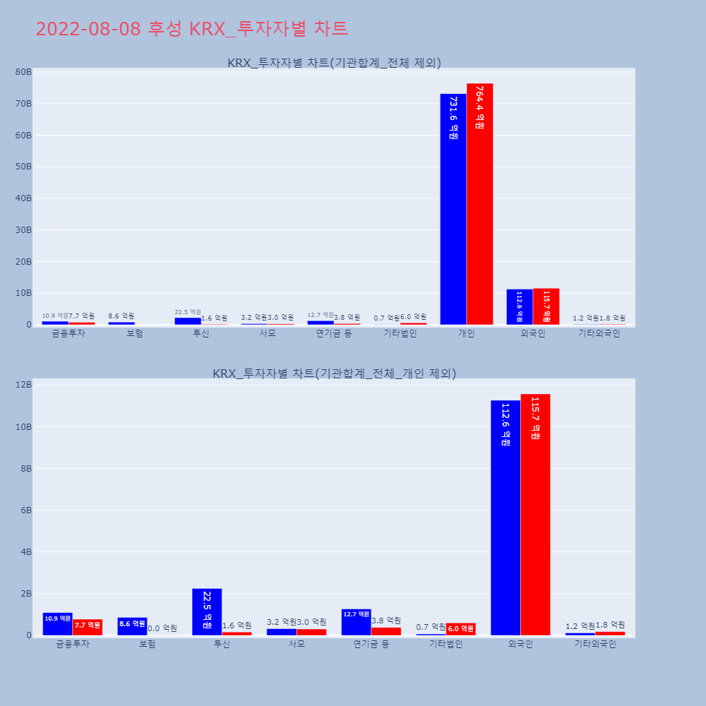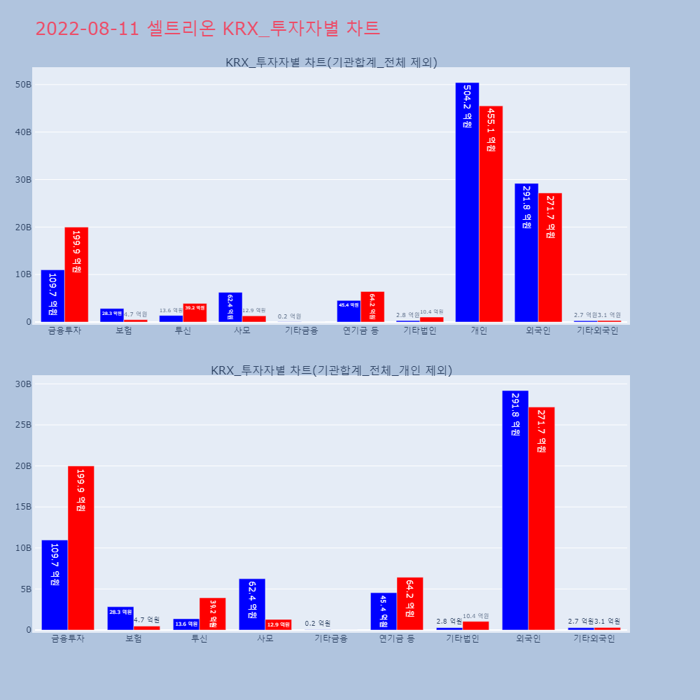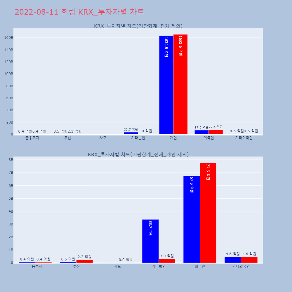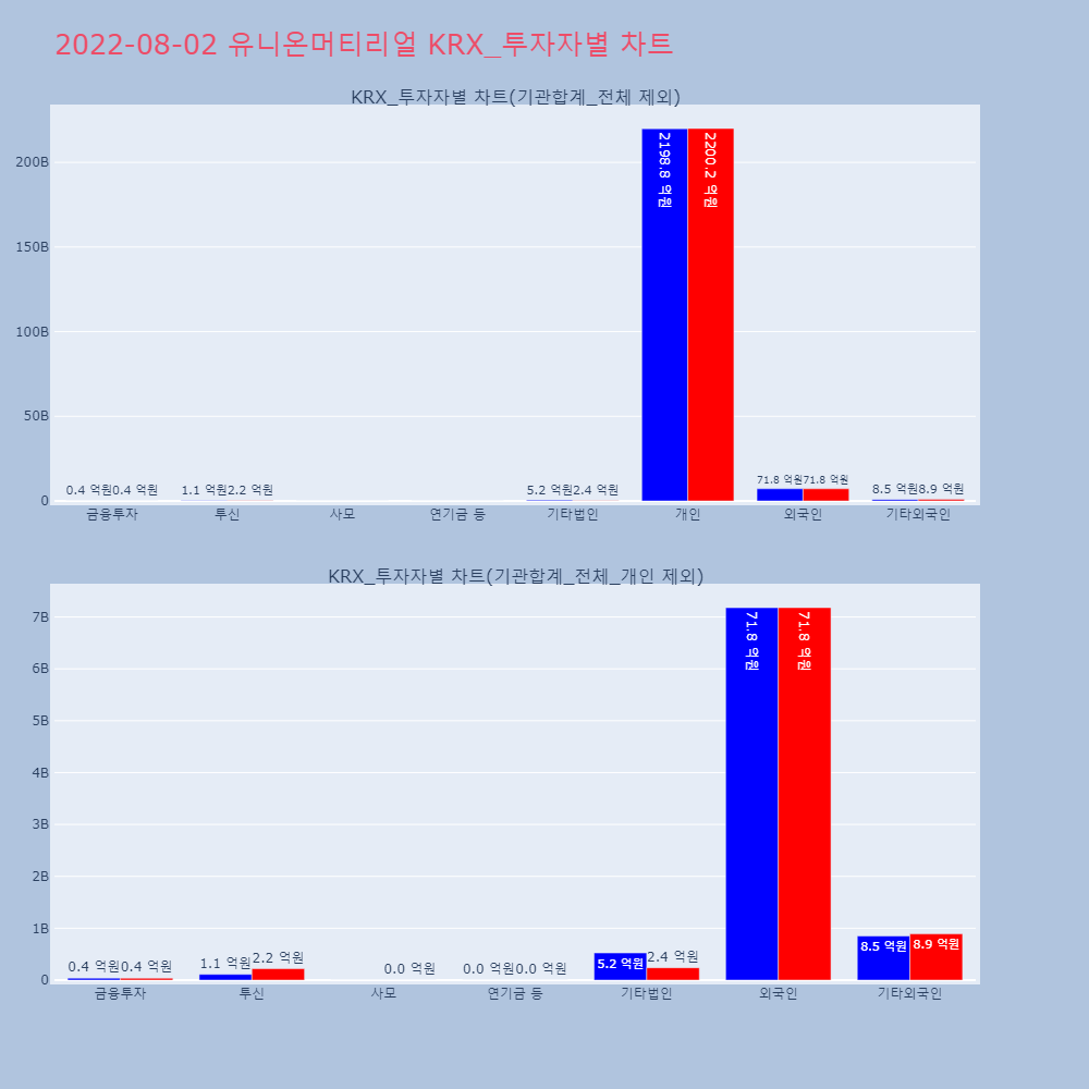 | 투자기관 | 거래량_매도 | 거래량_매수 | 거래량_순매수 | 거래대금_매도 | 거래대금_매수 | 거래대금_순매수 |