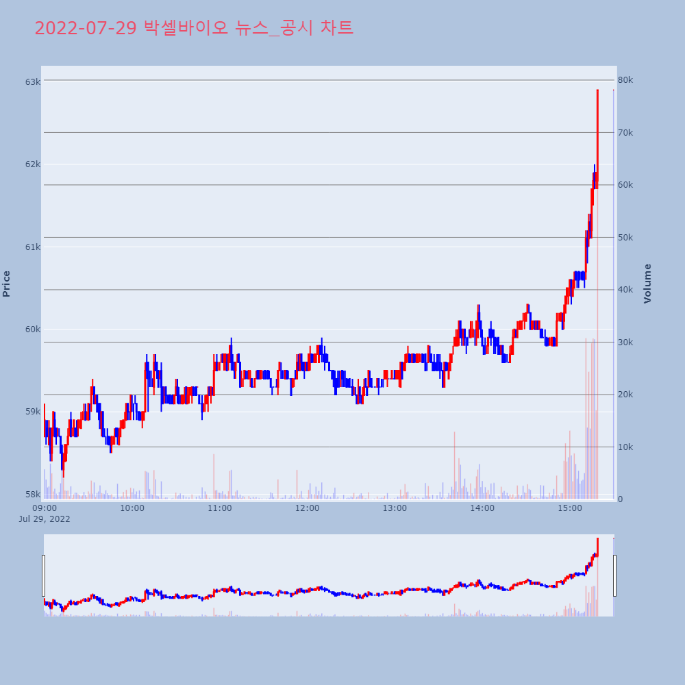 [박셀바이오(323990) (-1.27%)] (종가등락률:+7.34%)