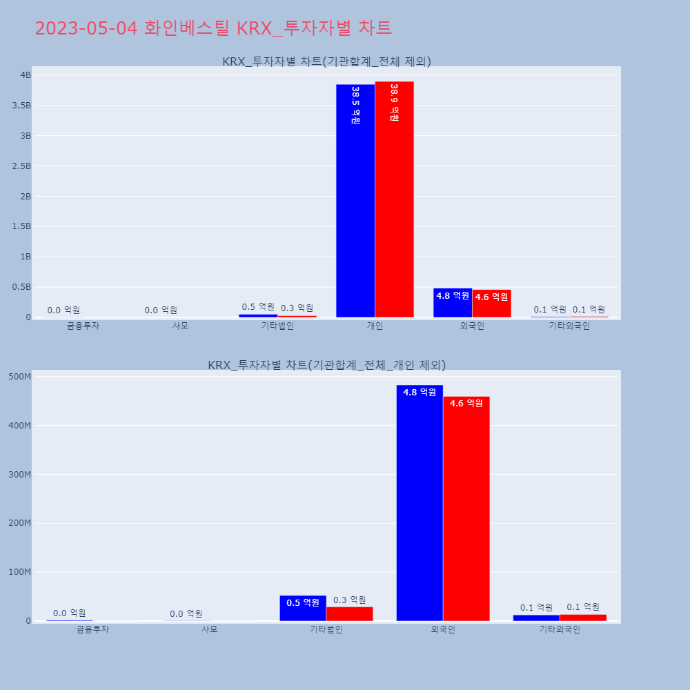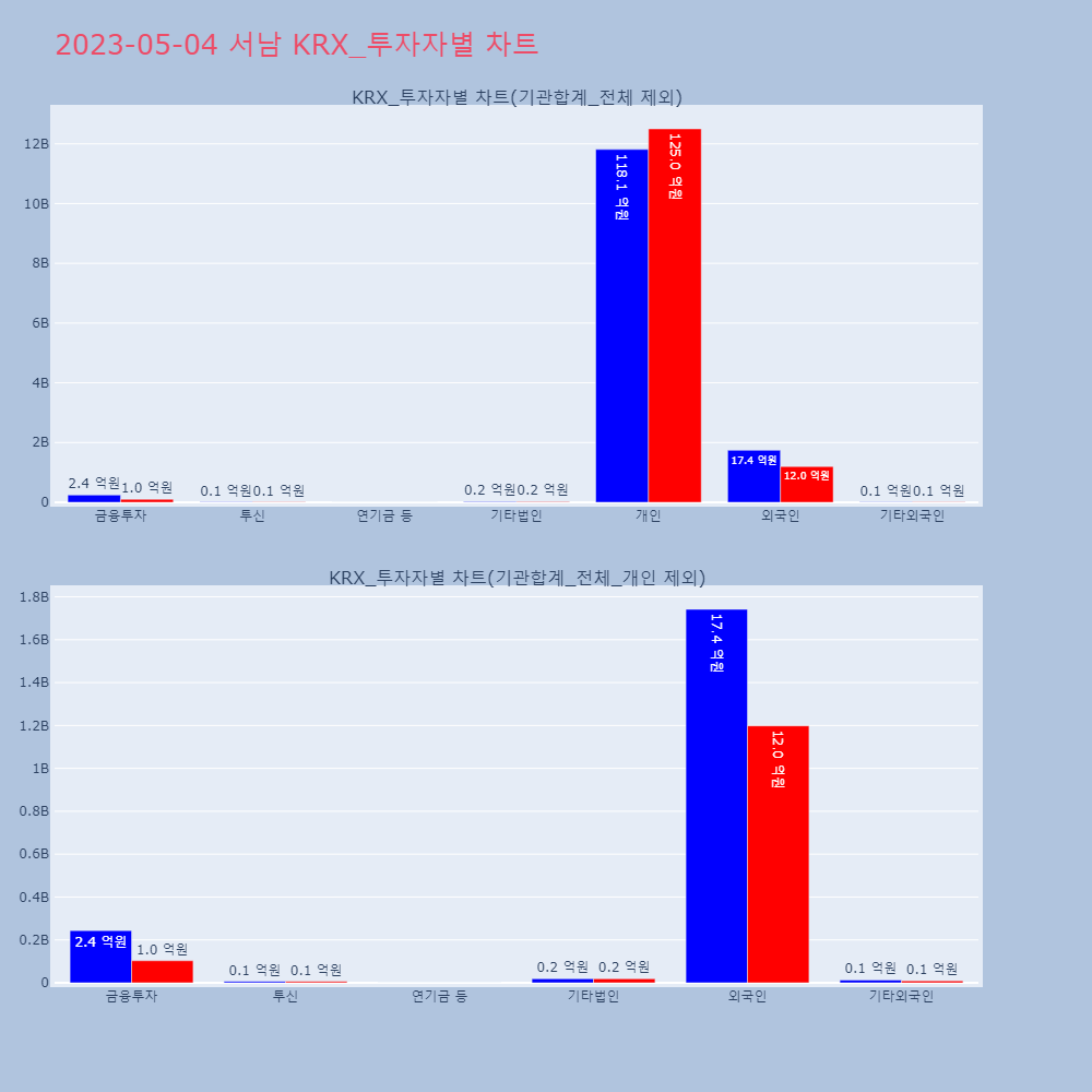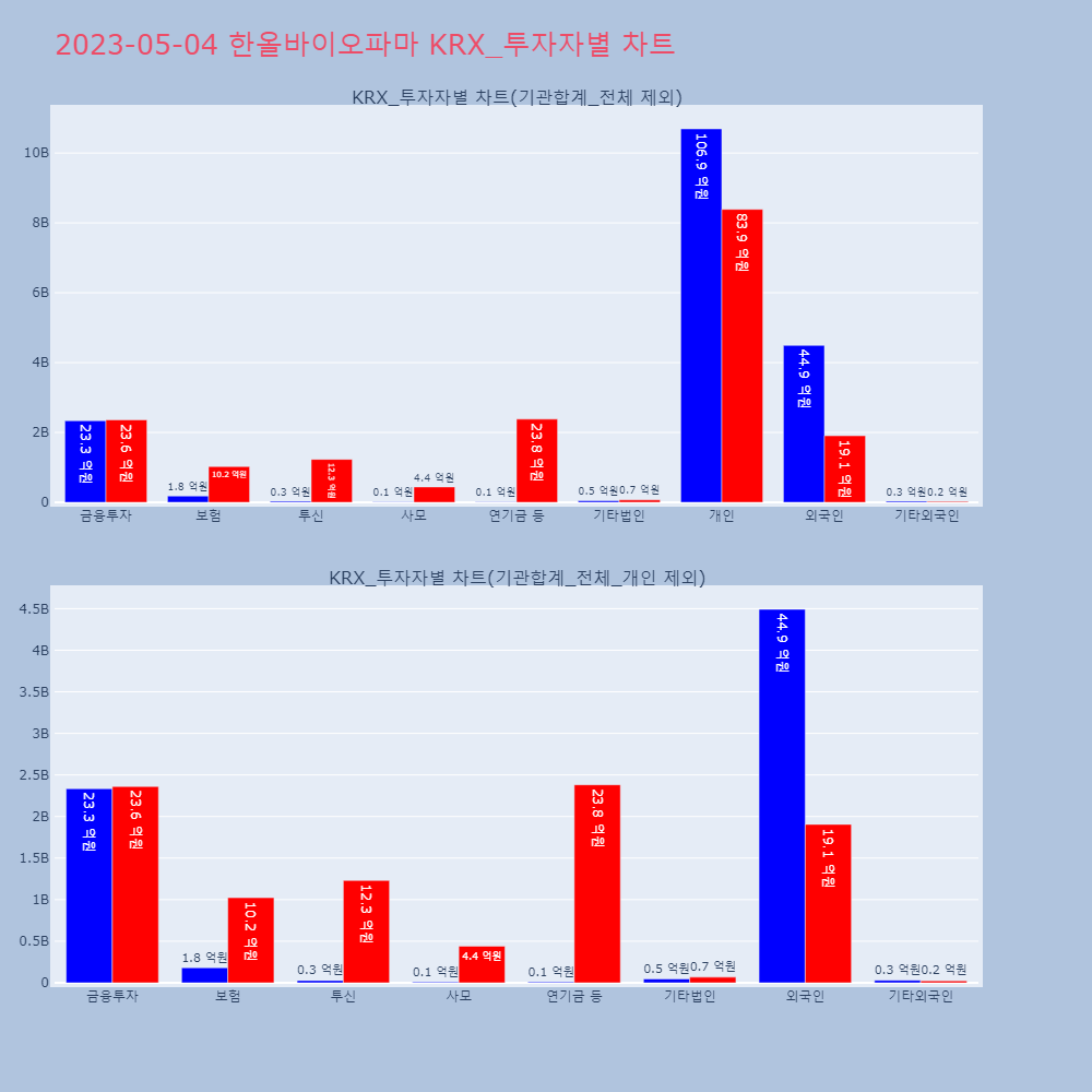 | 투자기관 | 매도량/금액(백) | 매수량/금액(백) | 순매수량/금액(백) |