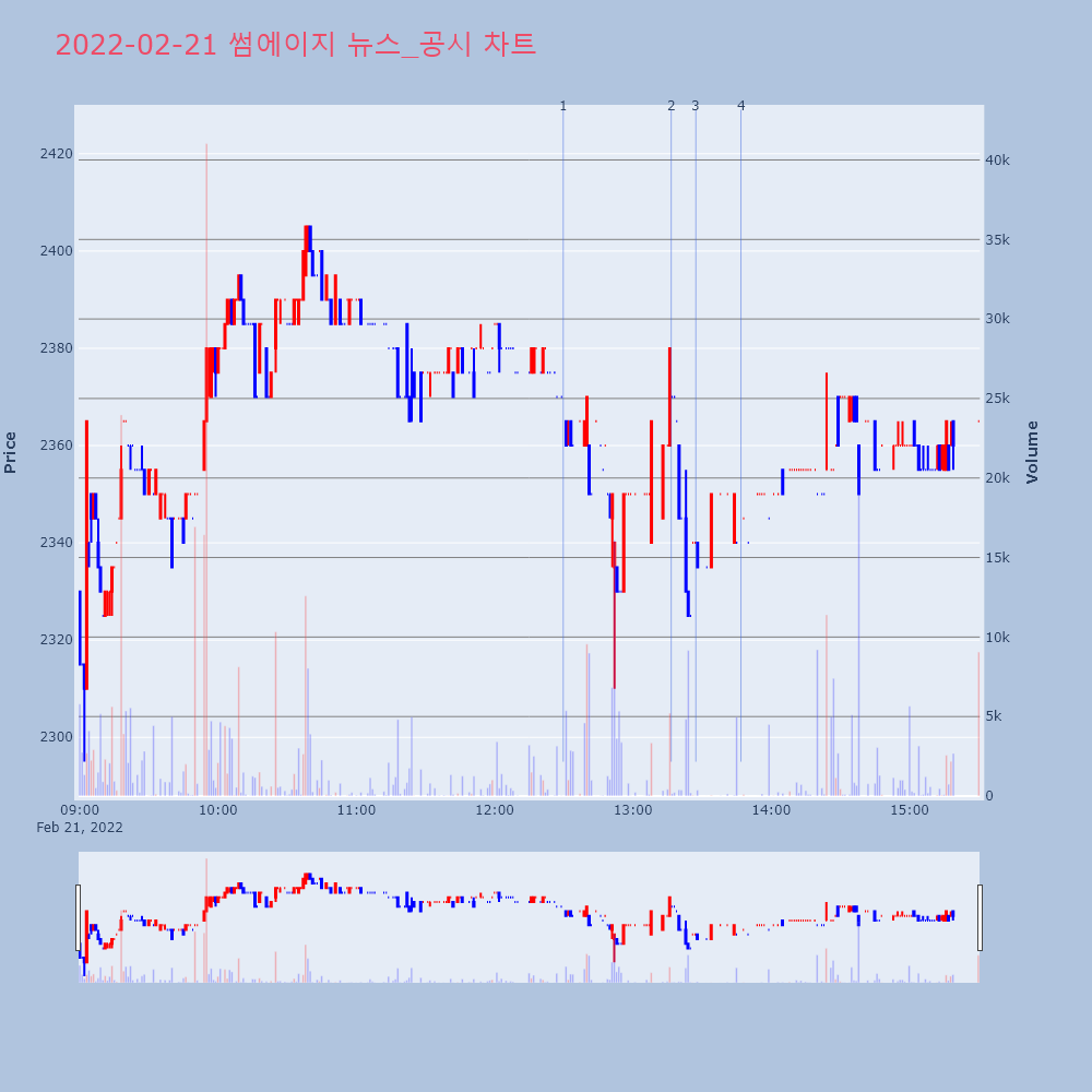 | 2023-03-22 15:10:00 | 20230322900515 | 조회공시요구(현저한시황변동)에대한답변(미확정) |