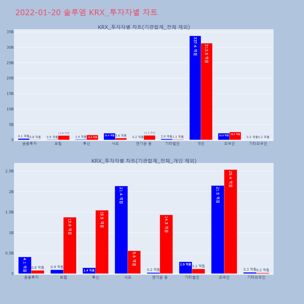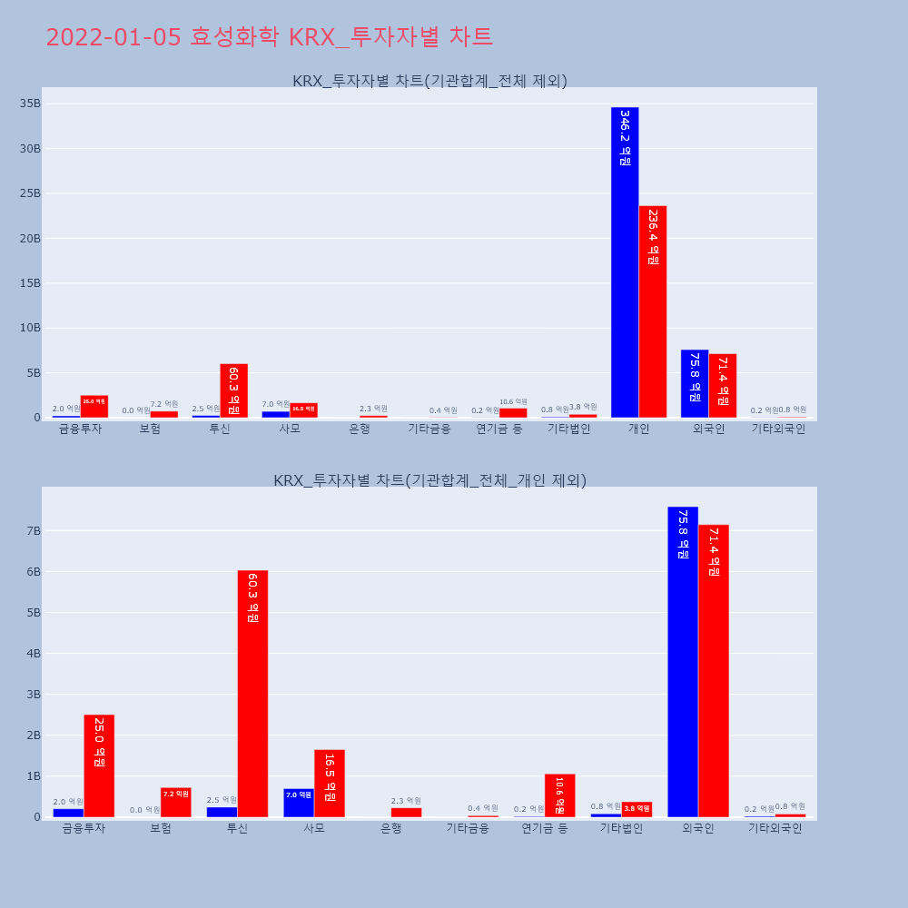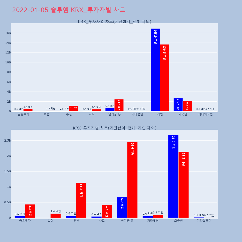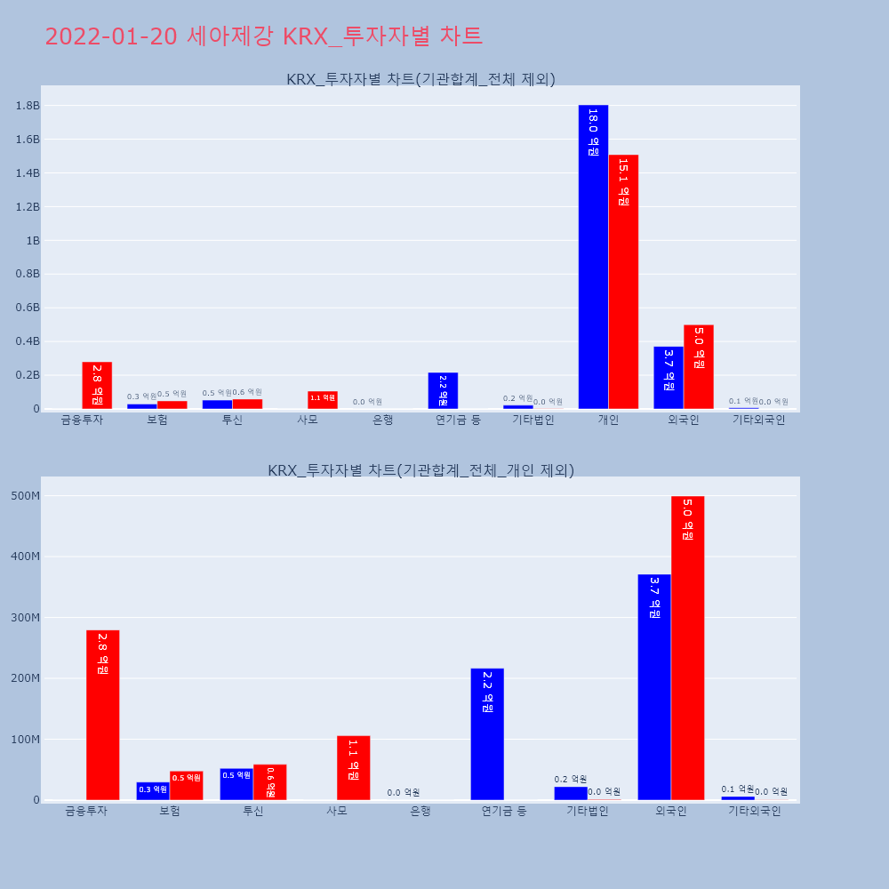 | 투자기관 | 매도량/금액(백) | 매수량/금액(백) | 순매수량/금액(백) |