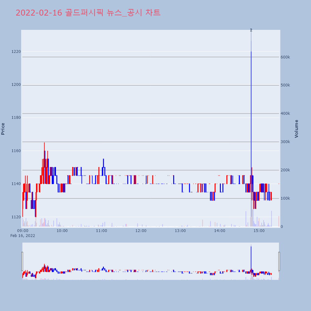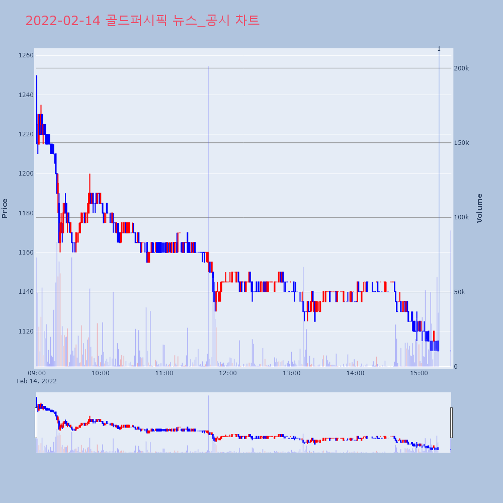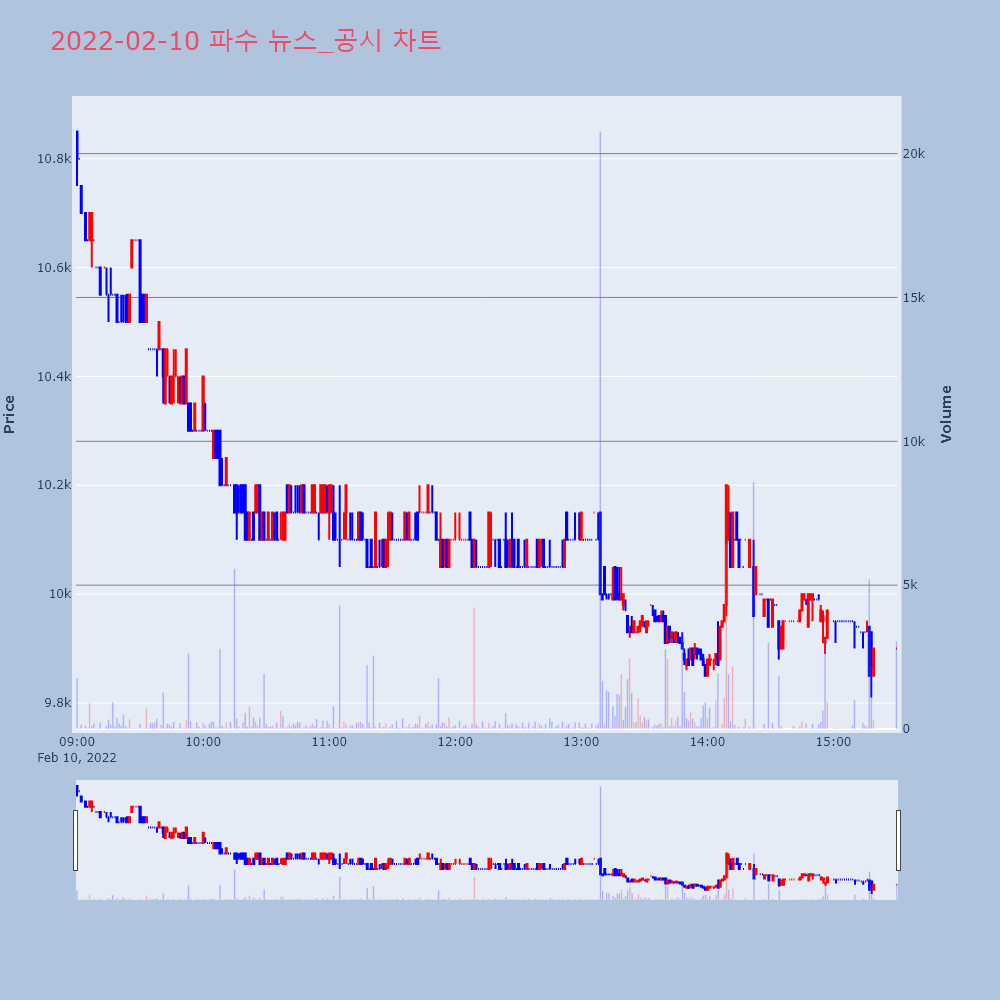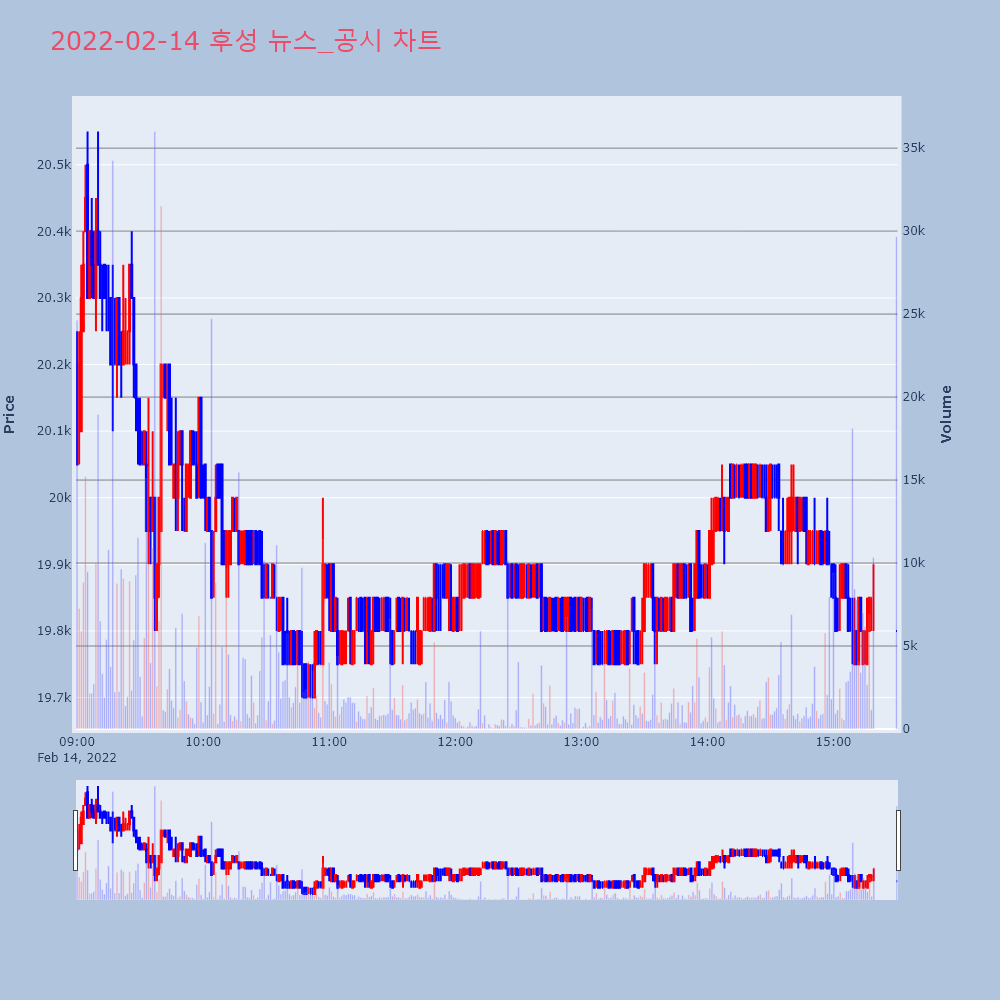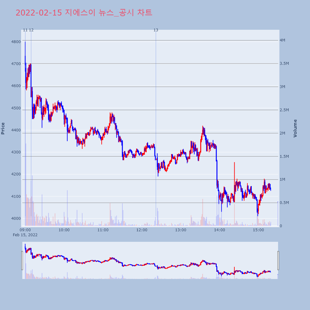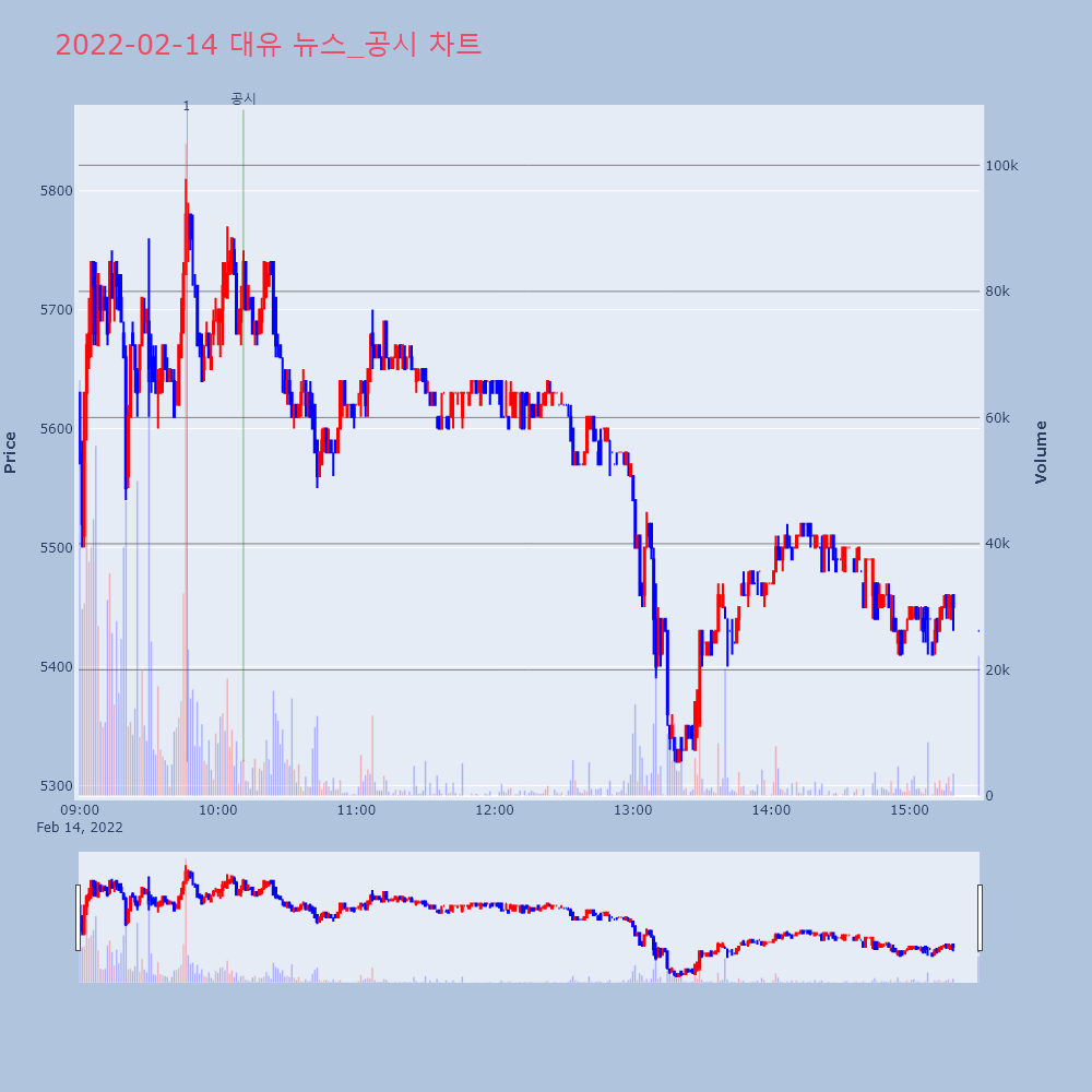 | 2022-02-17 17:43:00 | 20220217900622 | 매출액또는손익구조30%(대규모법인은15%)이상변동 |