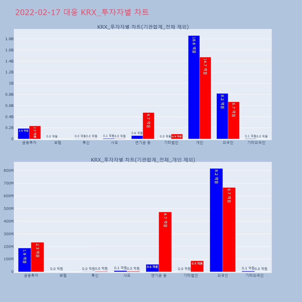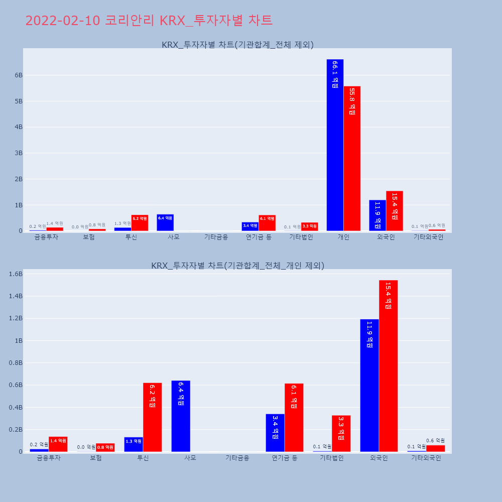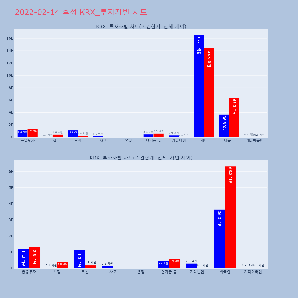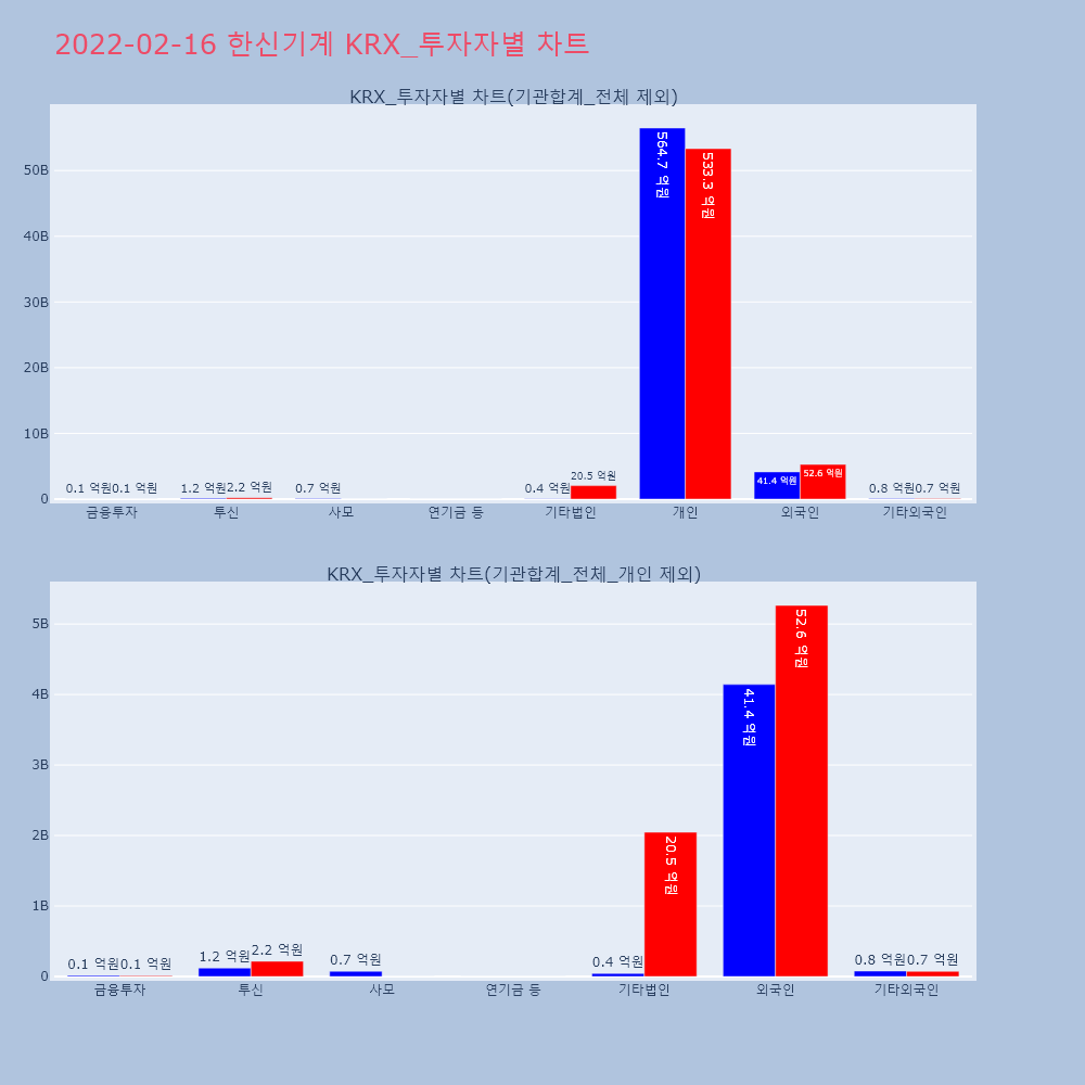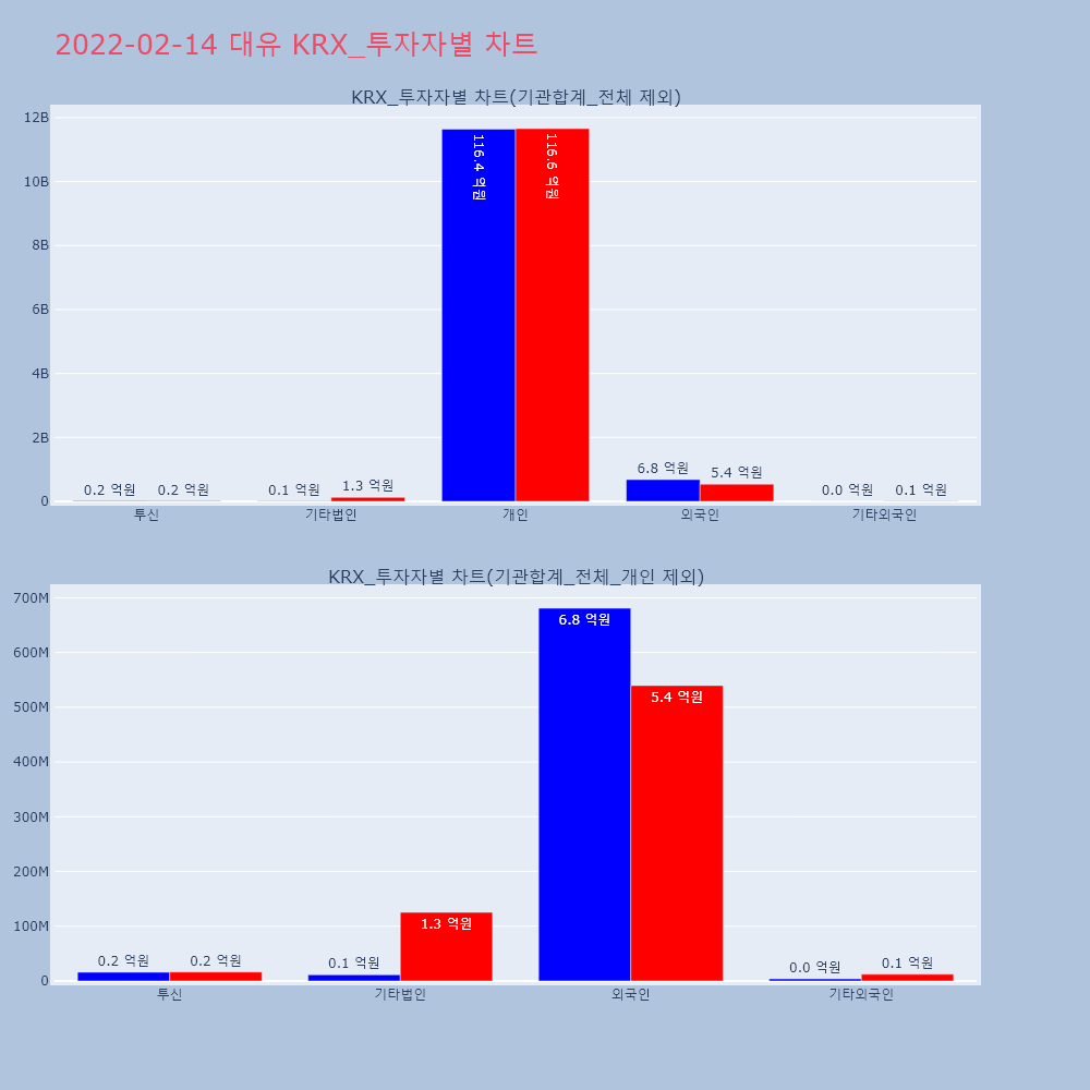 | 투자기관 | 거래량_매도 | 거래량_매수 | 거래량_순매수 | 거래대금_매도 | 거래대금_매수 | 거래대금_순매수 |
