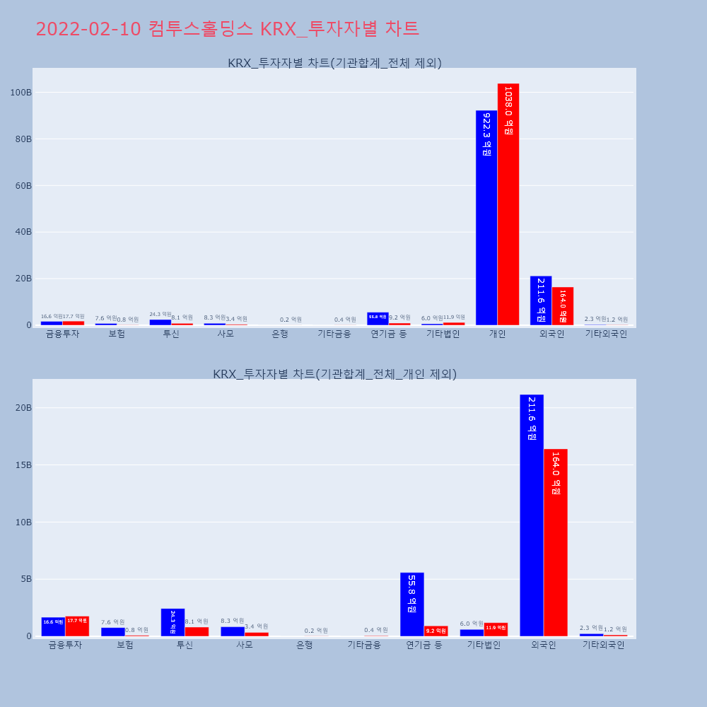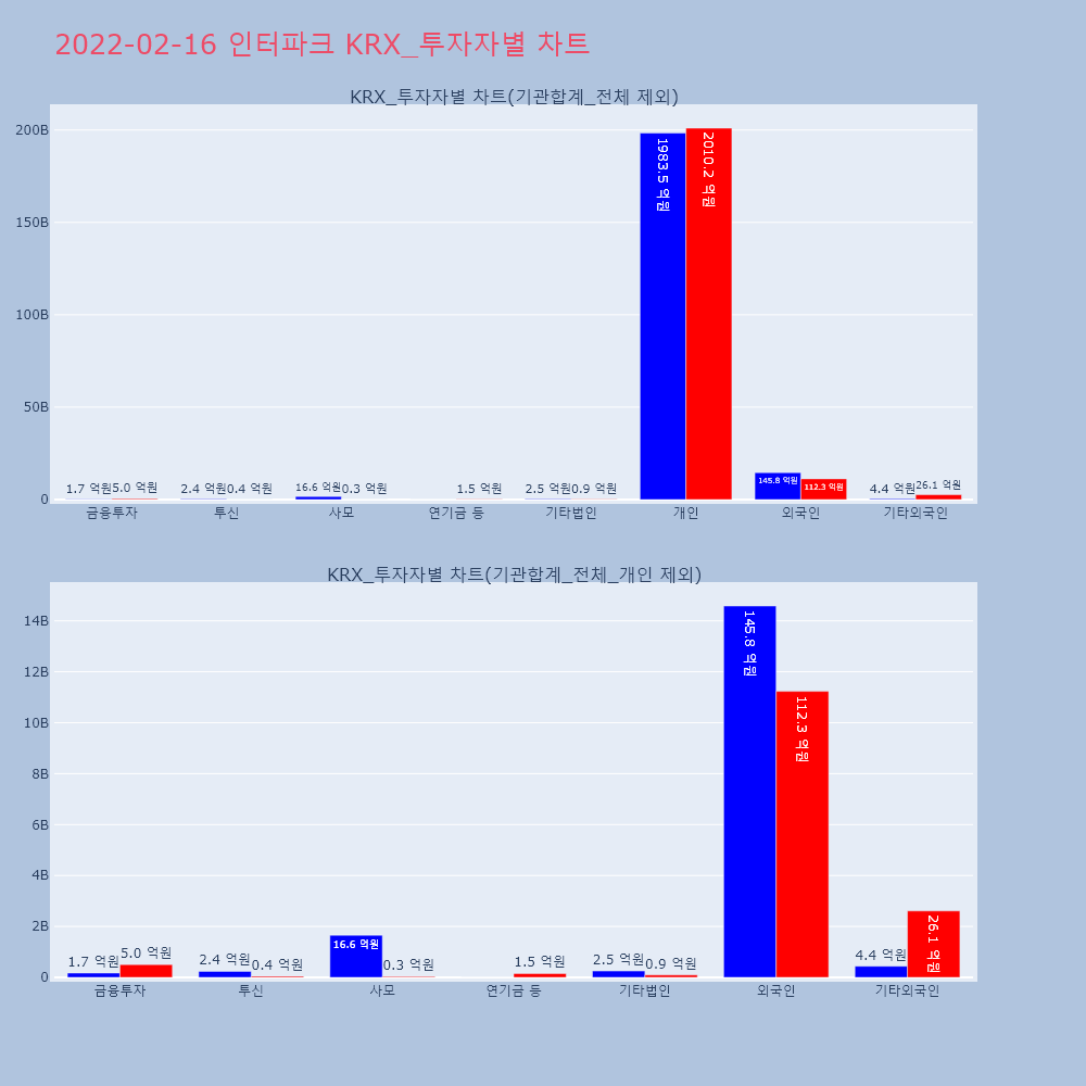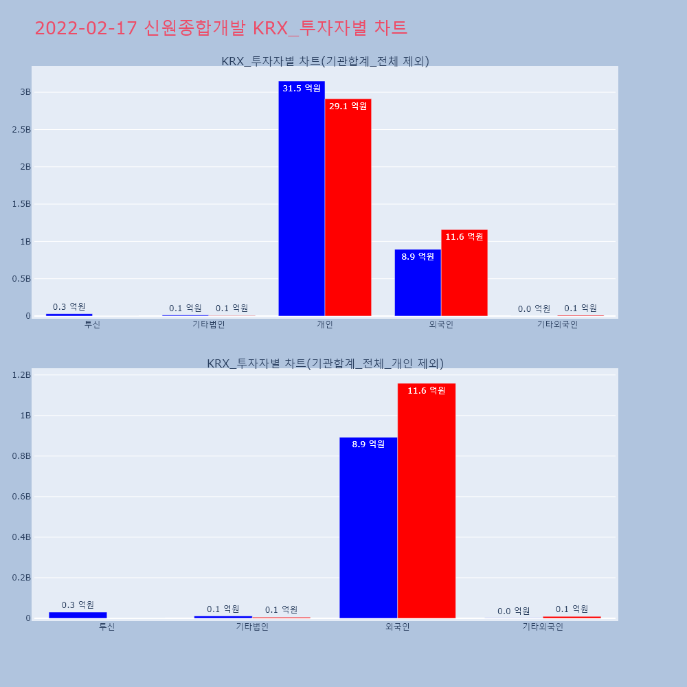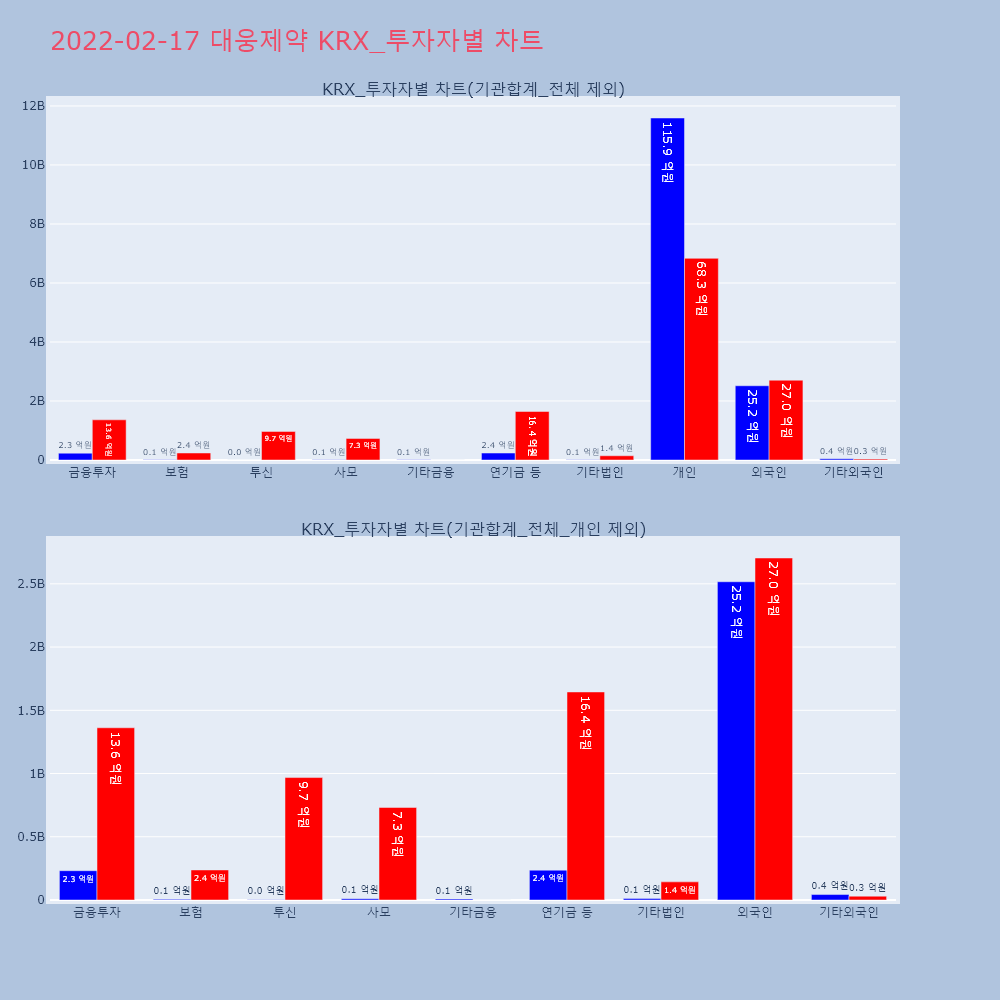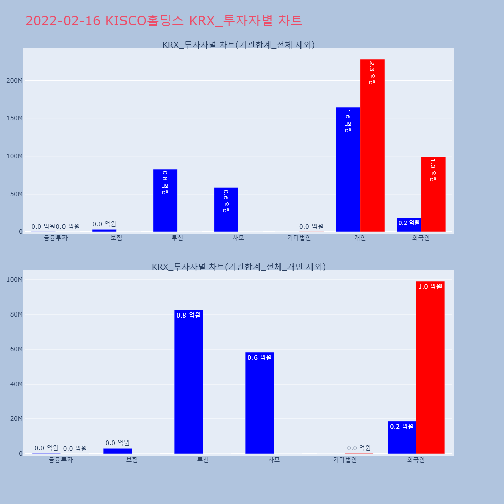 | 투자기관 | 거래량_매도 | 거래량_매수 | 거래량_순매수 | 거래대금_매도 | 거래대금_매수 | 거래대금_순매수 |