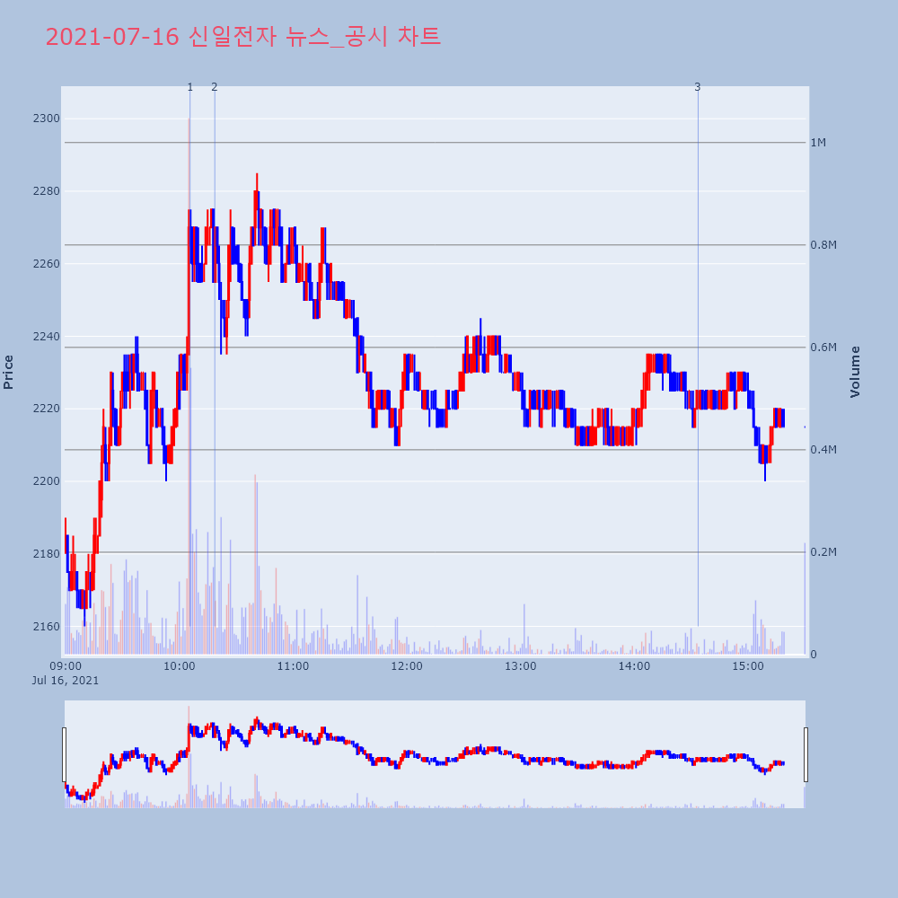 | 1 | 1 | 한일화학, +9.90% VI 발동한일화학(007770)이 VI가 발동했다. 전일 대비 | 조선경제 | 한일화학 | 2021-07-26 11:45:14 |