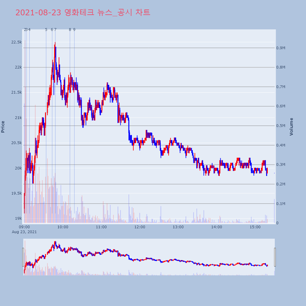 | 9 | 오전장 인기검색종목 PICK5 - 유라테크, 영화테크, 바이오니아.. 최적의매매타이밍을 실시간으로 전송하여 투자자들에게 도움 | 파이낸셜 | 삼성전자 | 2021-08-23 10:18:03 |