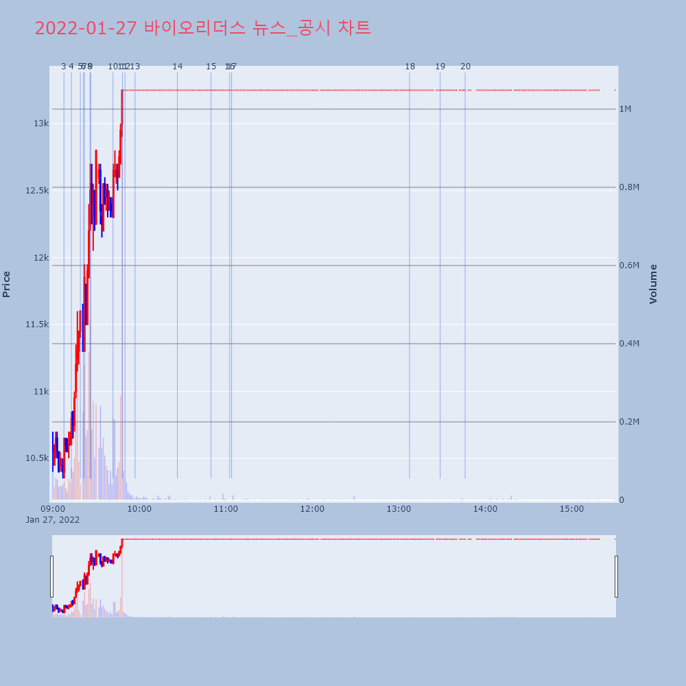 장중 코로나19(진단키트) 테마 상승 속 조달청과 242억원 규모 코로나19 자가검사키트 공급계약 체결 등에 정규장 21.48% 급등. 장 마감 후 지난해 실적 발표, 연결기준 매출액 3,218.29억원(전년대비 +603.95%), 영업익 1,927.51억원(전년대비 +660.11%) [내용출처: 인포스탁 infostock]