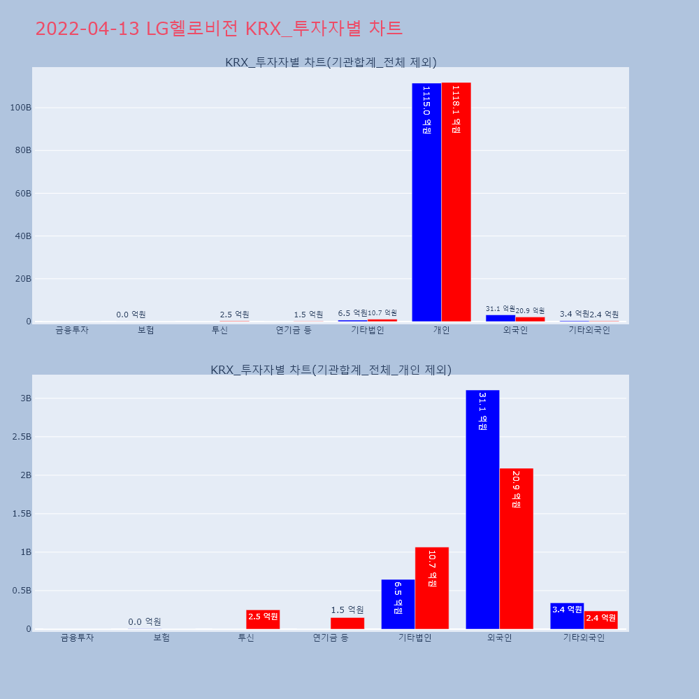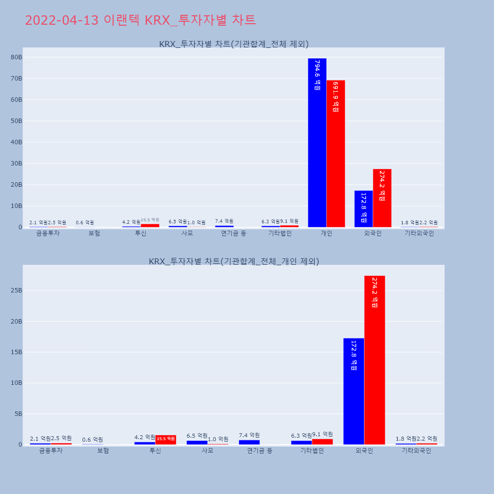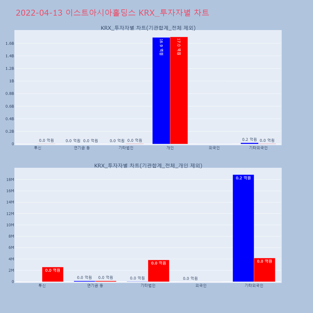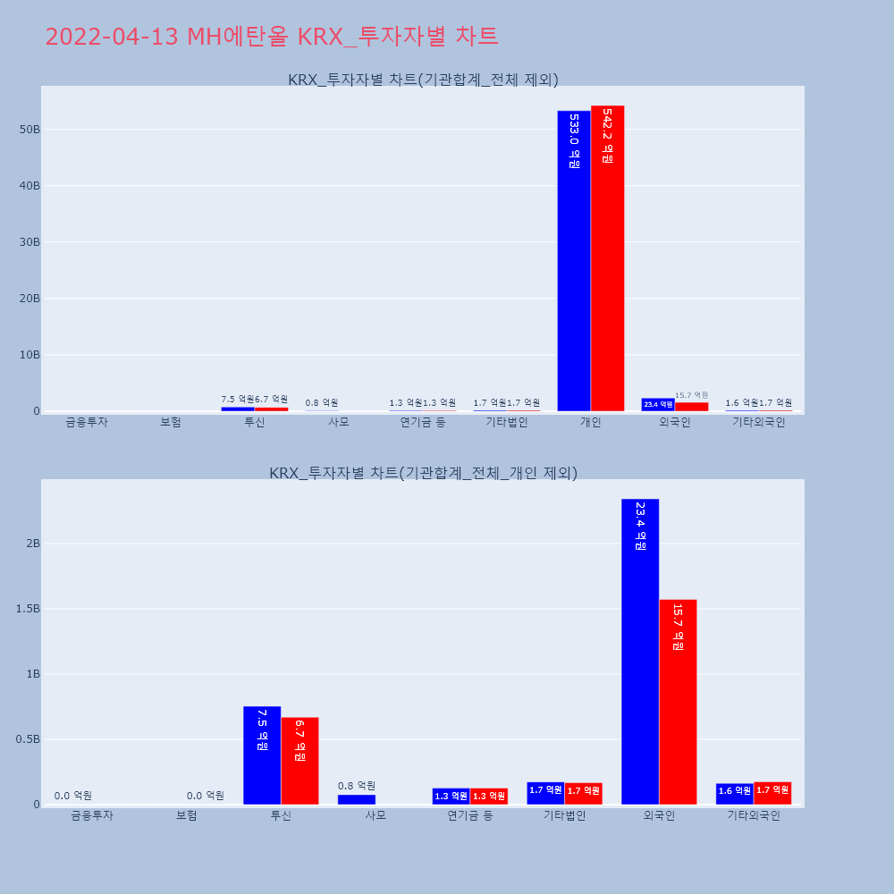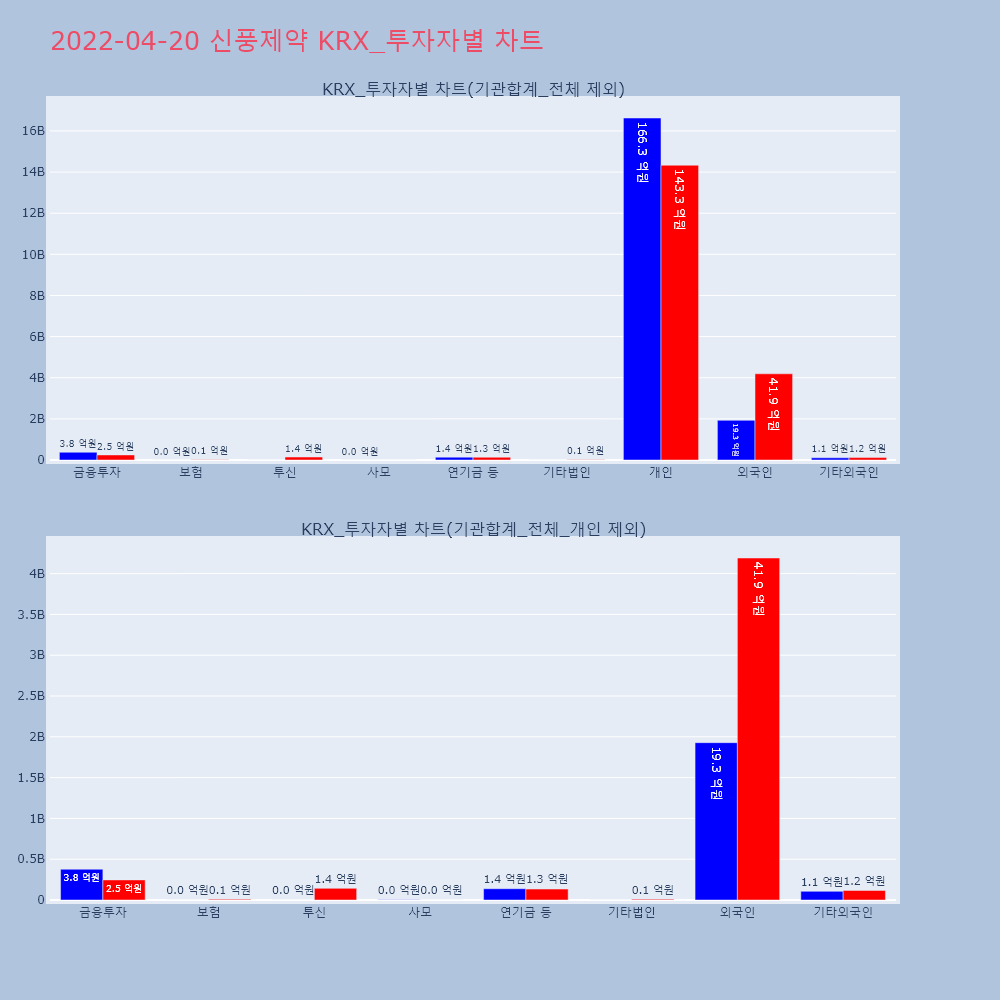 | 투자기관 | 매도량/금액(백) | 매수량/금액(백) | 순매수량/금액(백) |