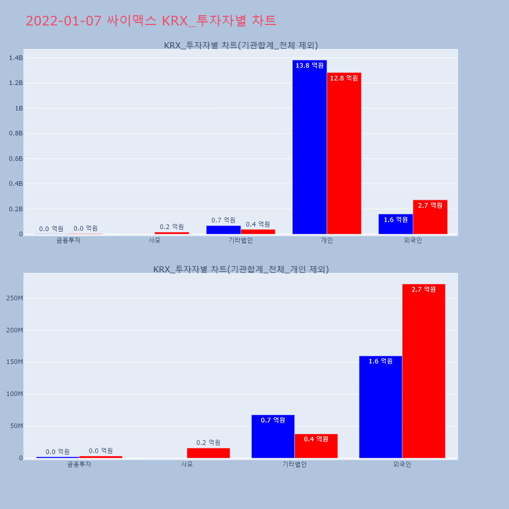 | 투자기관 | 거래량_매도 | 거래량_매수 | 거래량_순매수 | 거래대금_매도 | 거래대금_매수 | 거래대금_순매수 |