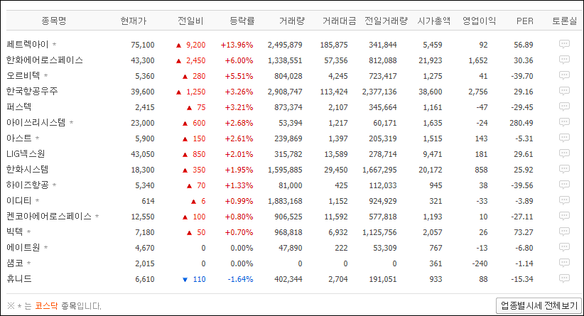 아래 번호 클릭시 해당 종목으로 이동합니다.