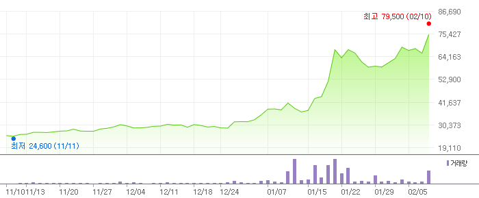 | 외국인 | 15,564 | 6,487 | -9,077 | 631,760,500 | 261,458,700 | -370,301,800 |