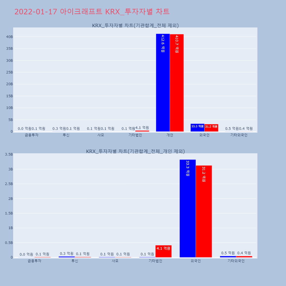 | 투자기관 | 거래량_매도 | 거래량_매수 | 거래량_순매수 | 거래대금_매도 | 거래대금_매수 | 거래대금_순매수 |