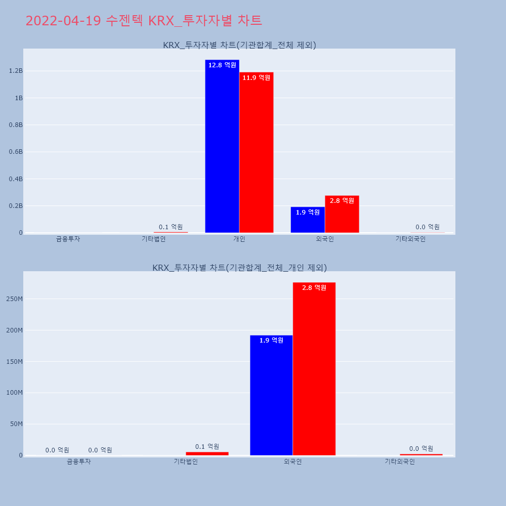 | 투자기관 | 매도량/금액(백) | 매수량/금액(백) | 순매수량/금액(백) |