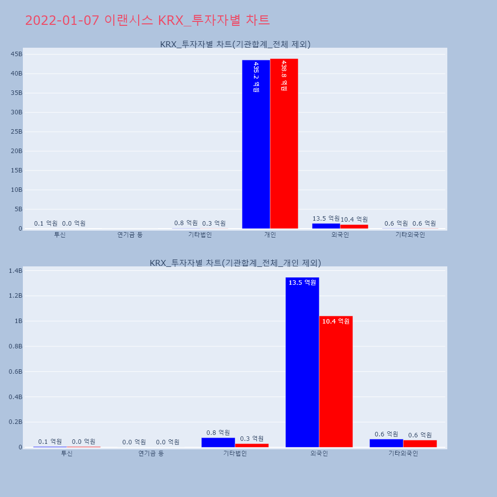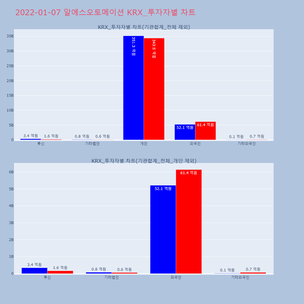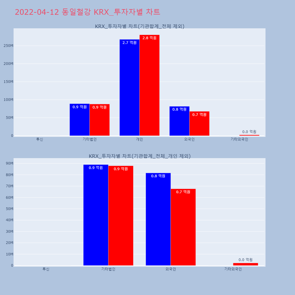 | 투자기관 | 매도량/금액(백) | 매수량/금액(백) | 순매수량/금액(백) |