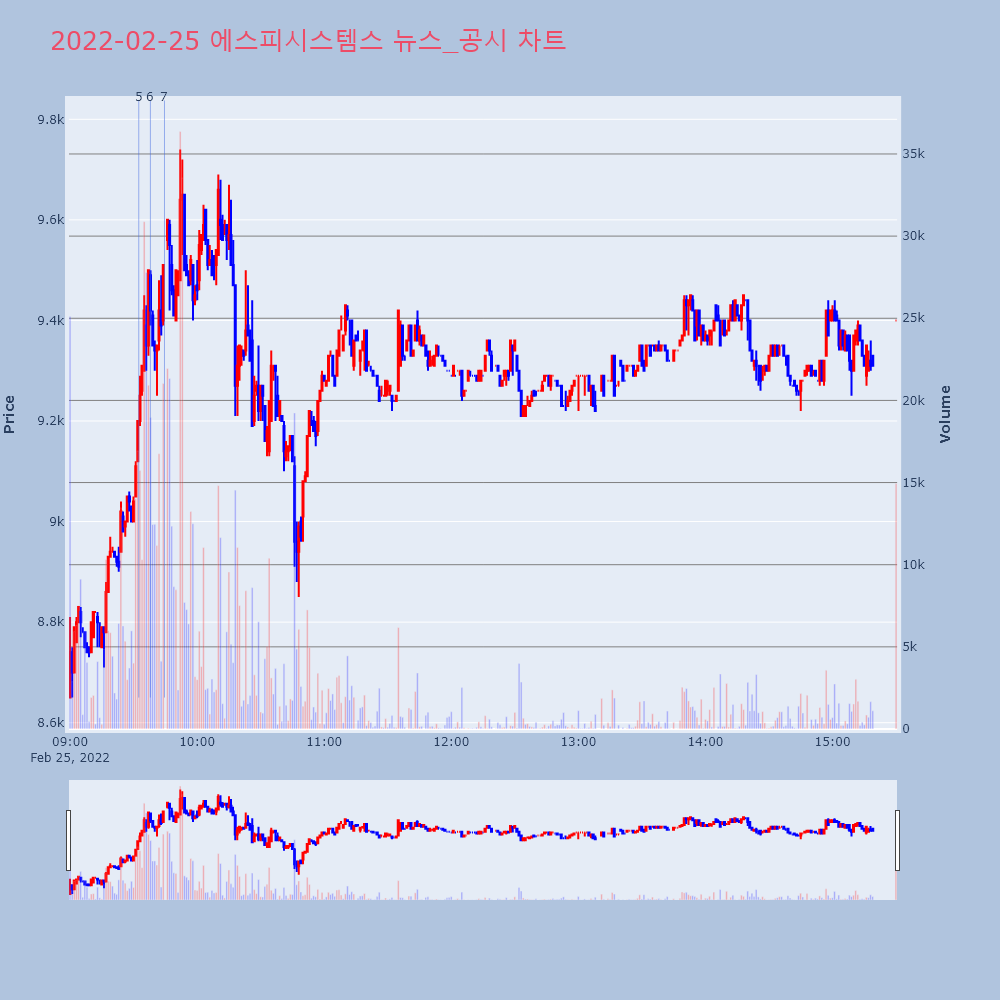 | 2 | 에스피시스템스, +9.00% VI 발동에스피시스템스(317830)가 VI가 발동했다. 전일 | 조선경제 | 에스피시스템스 | 2022-03-23 11:00:29 |