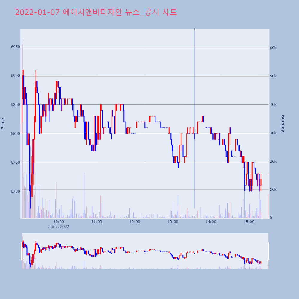 | 4 | 에이치앤비디자인, -5.32% VI 발동에이치앤비디자인이 VI가 발동했다. 전일 대비 5.32 | 조선경제 | 에이치앤비디자인 | 2023-01-05 12:58:19 |