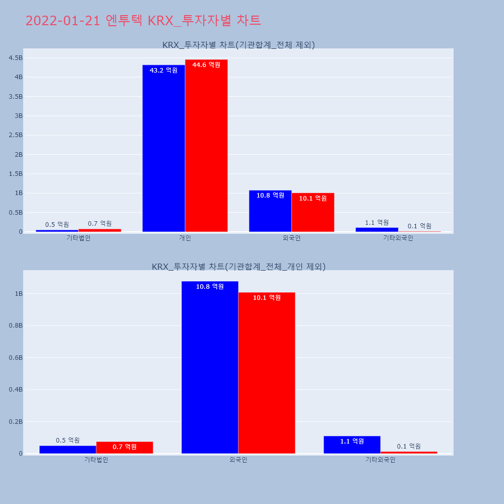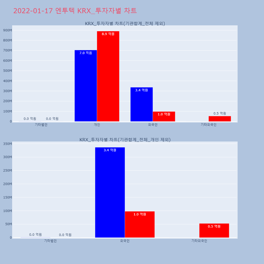 | 3 | [장중수급포착] 엔투텍, 외국인 56.11만 주 대량 순매수... 주가 +15.28% [서울=뉴스핌] 로보뉴스 = 17일 13시 30분 현재 | 뉴스핌 | 엔투텍 | 2023-04-17 13:30:58 |