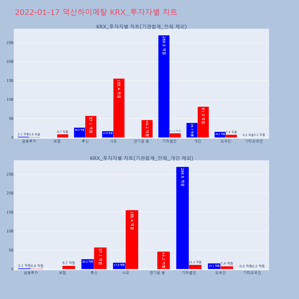 | 투자기관 | 매도량/금액(백) | 매수량/금액(백) | 순매수량/금액(백) |