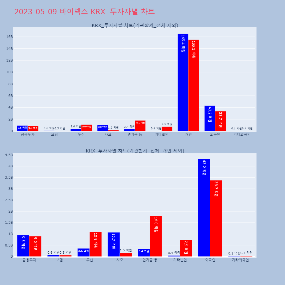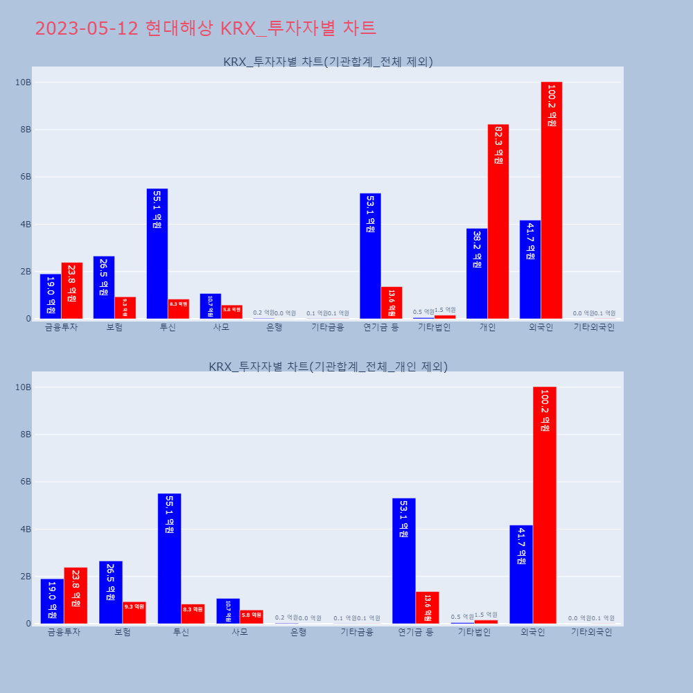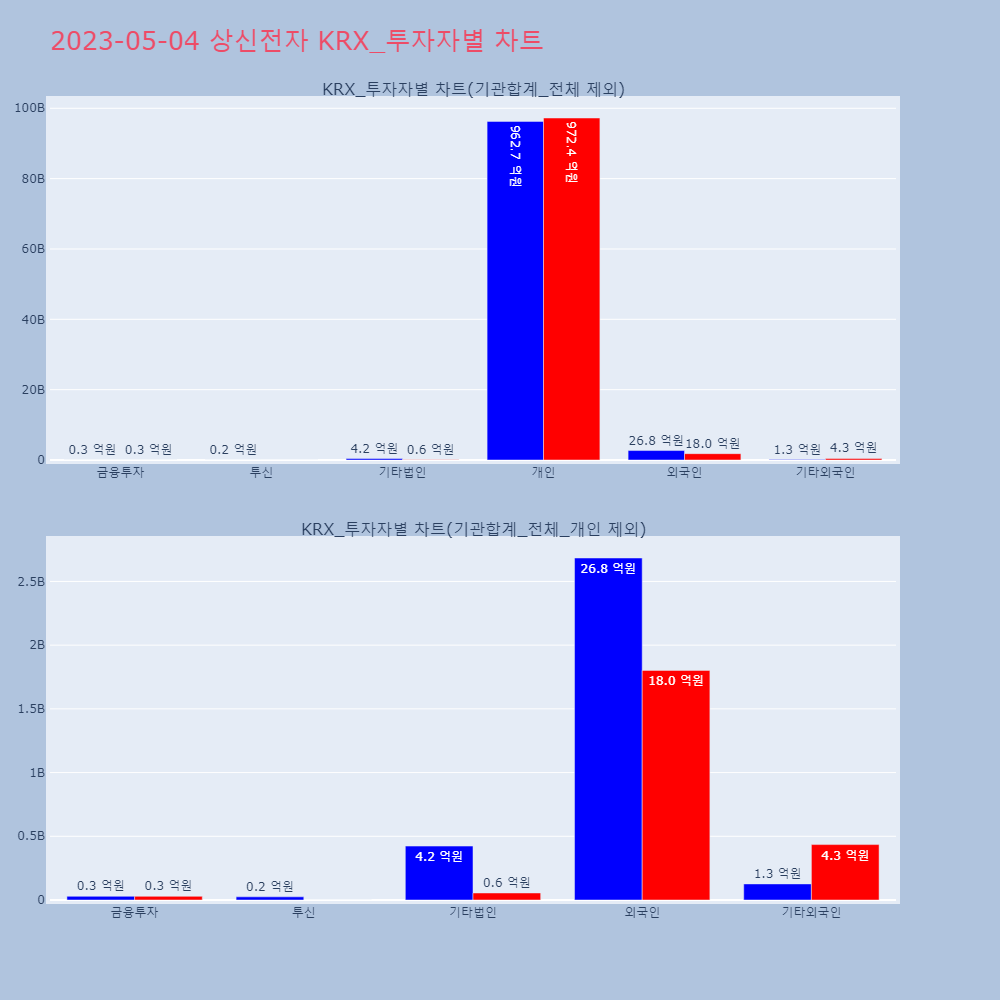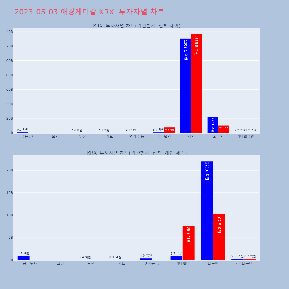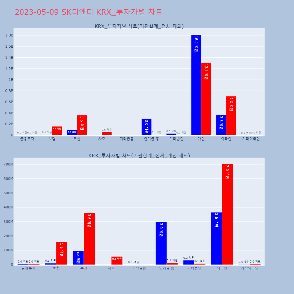 | 투자기관 | 매도량/금액(백) | 매수량/금액(백) | 순매수량/금액(백) |