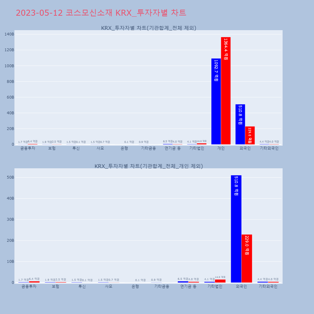 | 투자기관 | 매도량/금액(백) | 매수량/금액(백) | 순매수량/금액(백) |