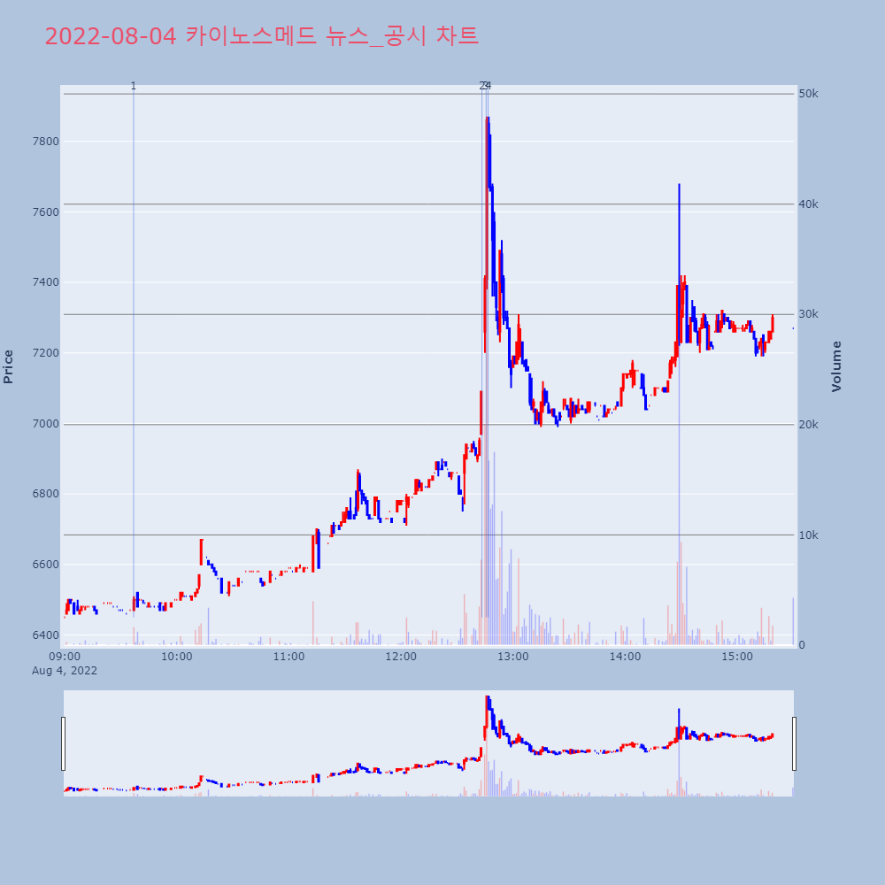 | 2 | 카이노스메드, +10.11% VI 발동카이노스메드(284620)가 VI가 발동했다. 전일 대 | 조선경제 | 카이노스메드 | 2022-08-04 12:43:24 |