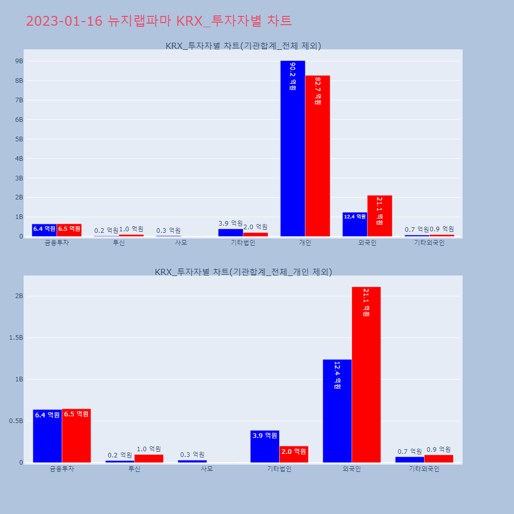 | 투자기관 | 매도량/금액(백) | 매수량/금액(백) | 순매수량/금액(백) |