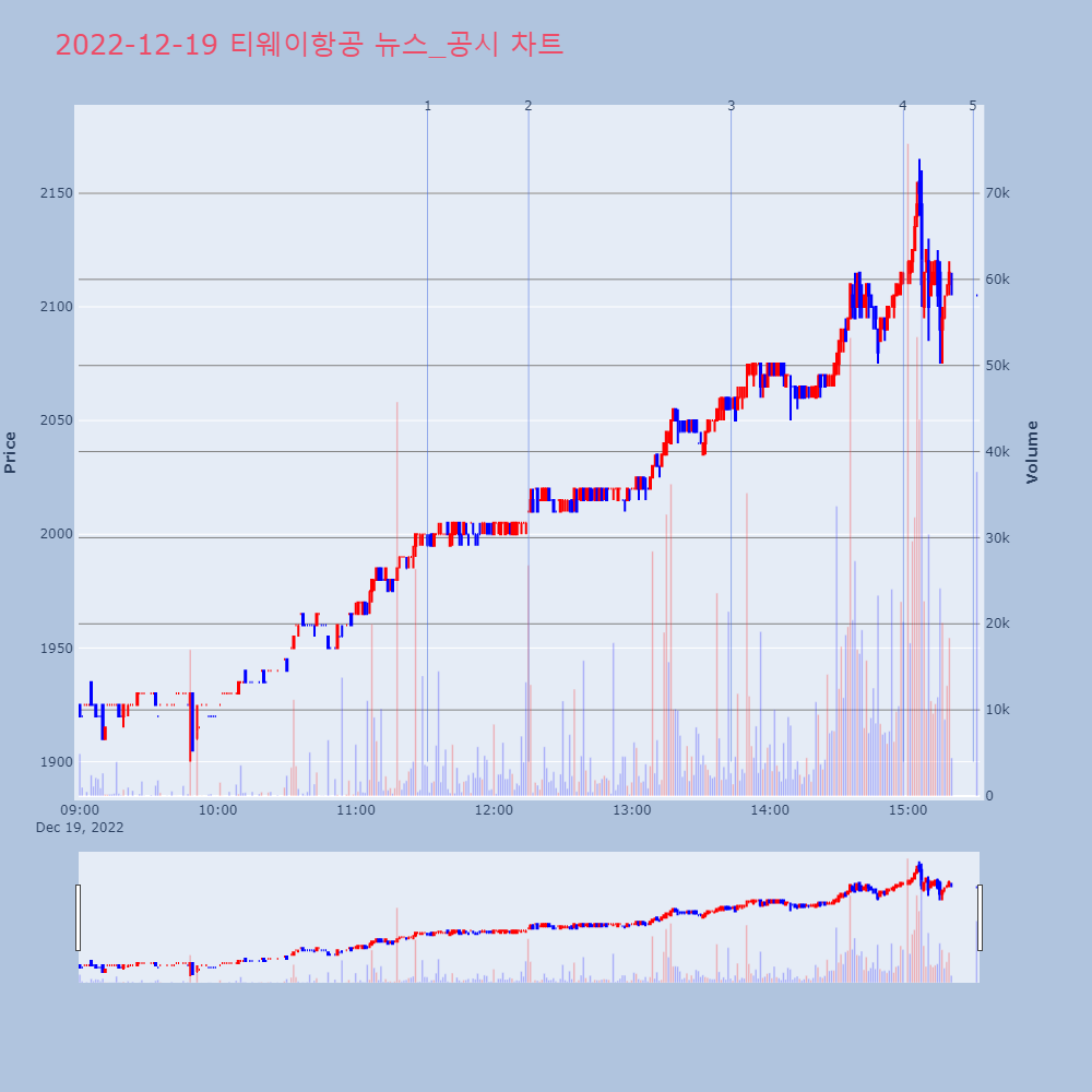 | 4 | 티웨이항공, +8.46% VI 발동티웨이항공이 VI가 발동했다. 전일 대비 8.46% 상 | 조선경제 | 티웨이항공 | 2022-12-19 14:58:04 |
