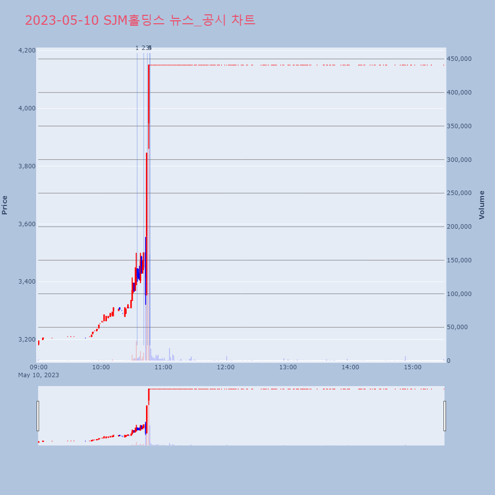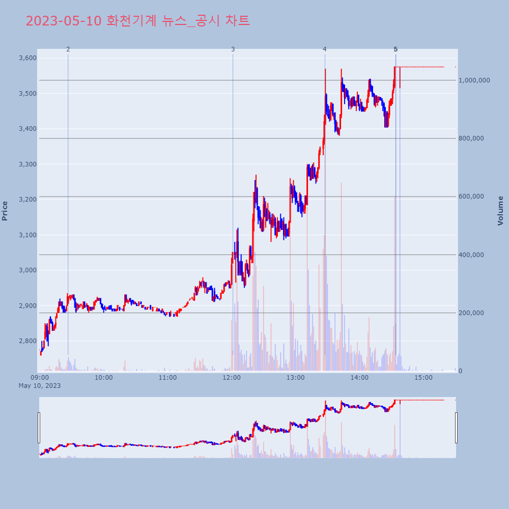 | 5 | 화천기계, +30.00% 상한가화천기계가 상한가를 기록했다. 전일 대비 30.00% | 조선경제 | 화천기계 | 2023-05-10 14:34:00 |