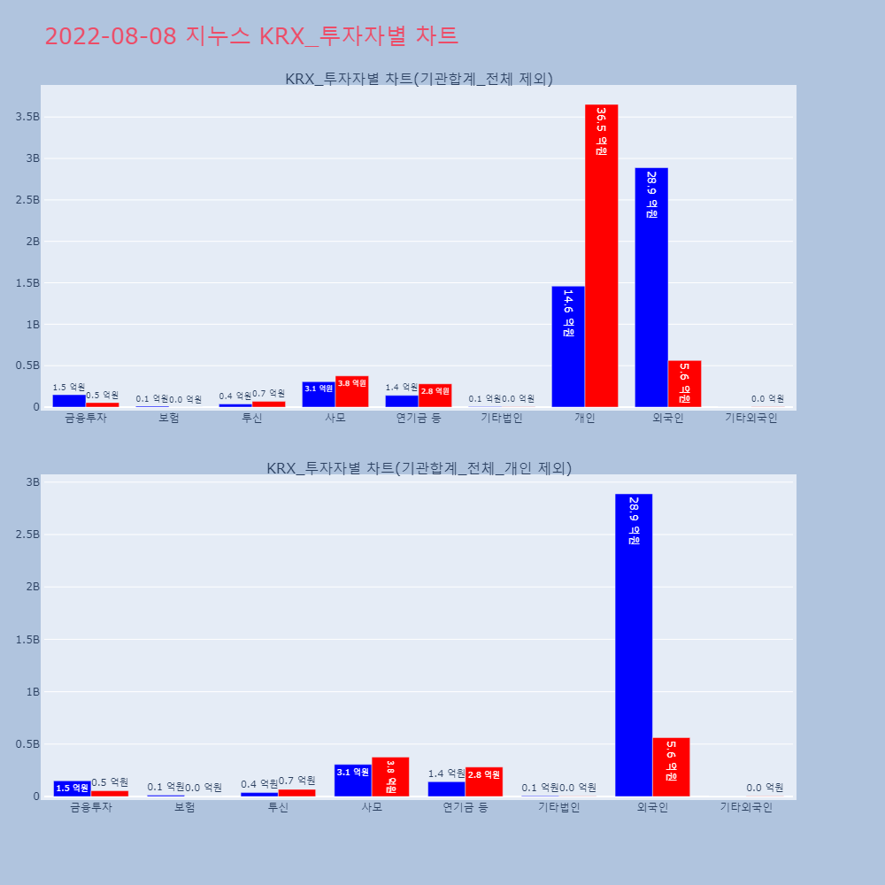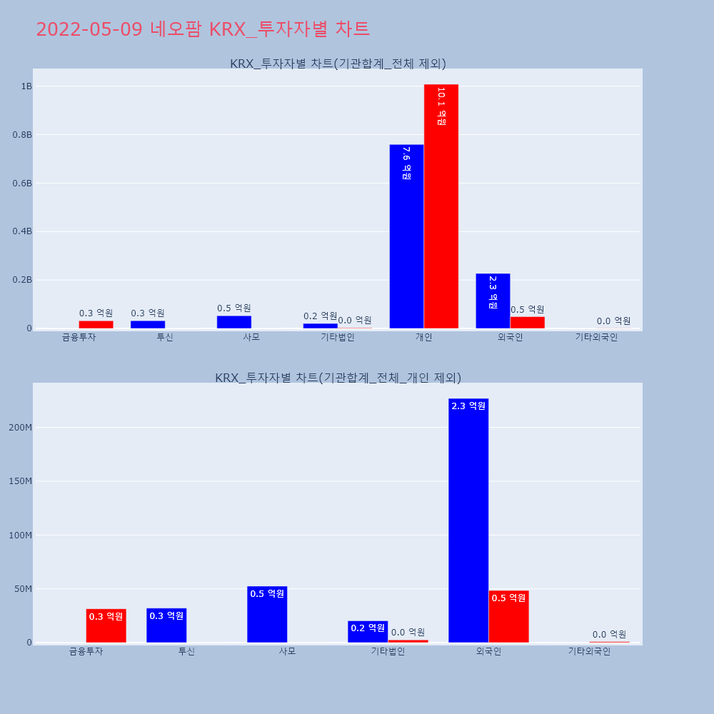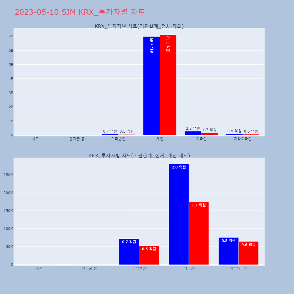| 투자기관 | 매도량/금액(백) | 매수량/금액(백) | 순매수량/금액(백) |