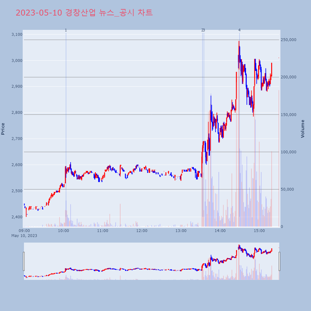 | 3 | 경창산업, +10.02% VI 발동경창산업이 VI가 발동했다. 전일 대비 10.02% 상 | 조선경제 | 경창산업 | 2023-05-10 13:35:13 |