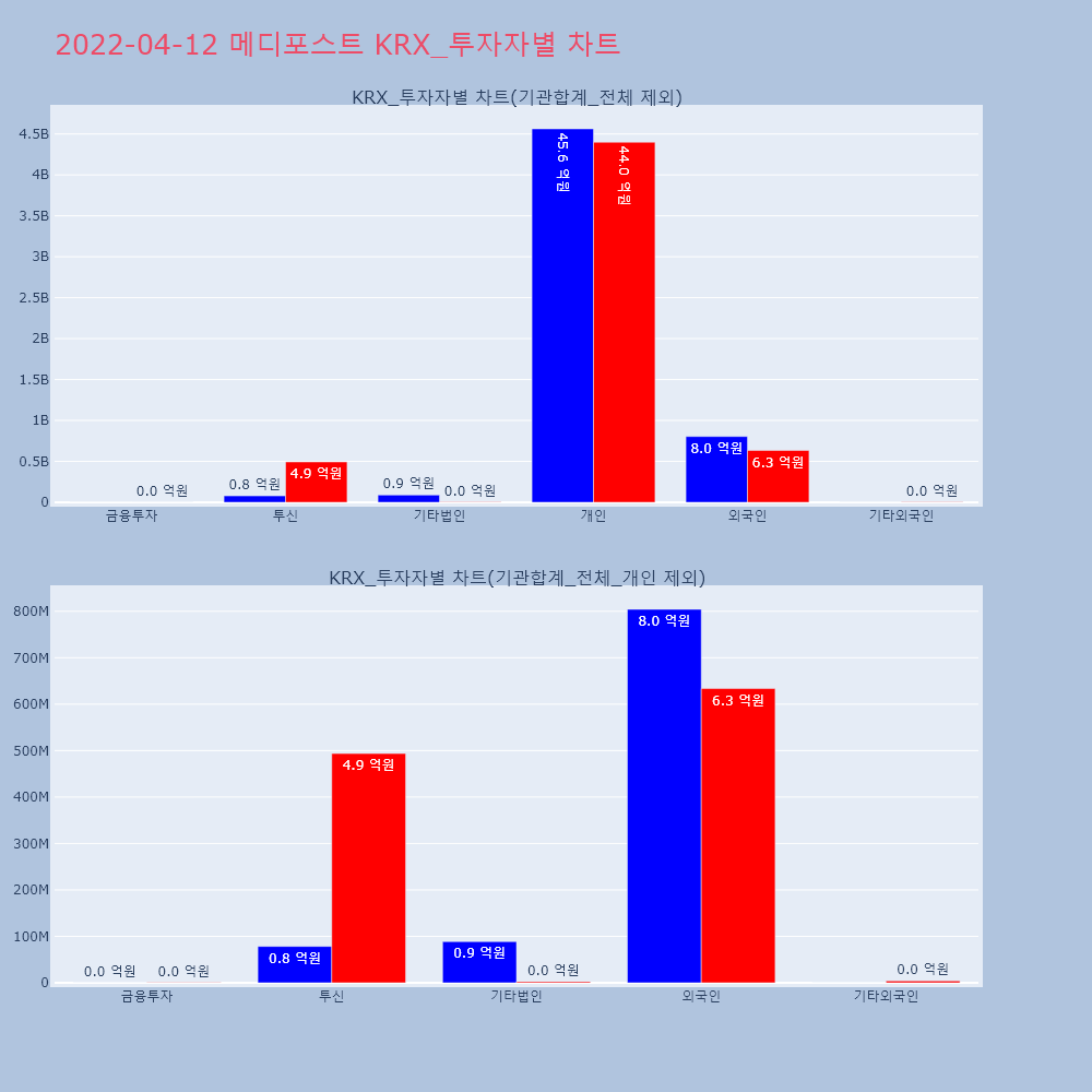 | 투자기관 | 거래량_매도 | 거래량_매수 | 거래량_순매수 | 거래대금_매도 | 거래대금_매수 | 거래대금_순매수 |