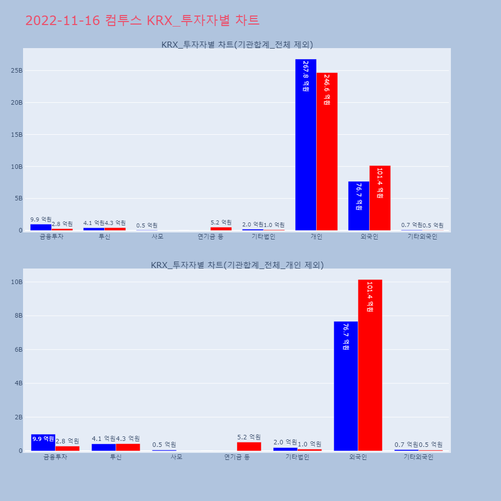 | 투자기관 | 거래량_매도 | 거래량_매수 | 거래량_순매수 | 거래대금_매도 | 거래대금_매수 | 거래대금_순매수 |