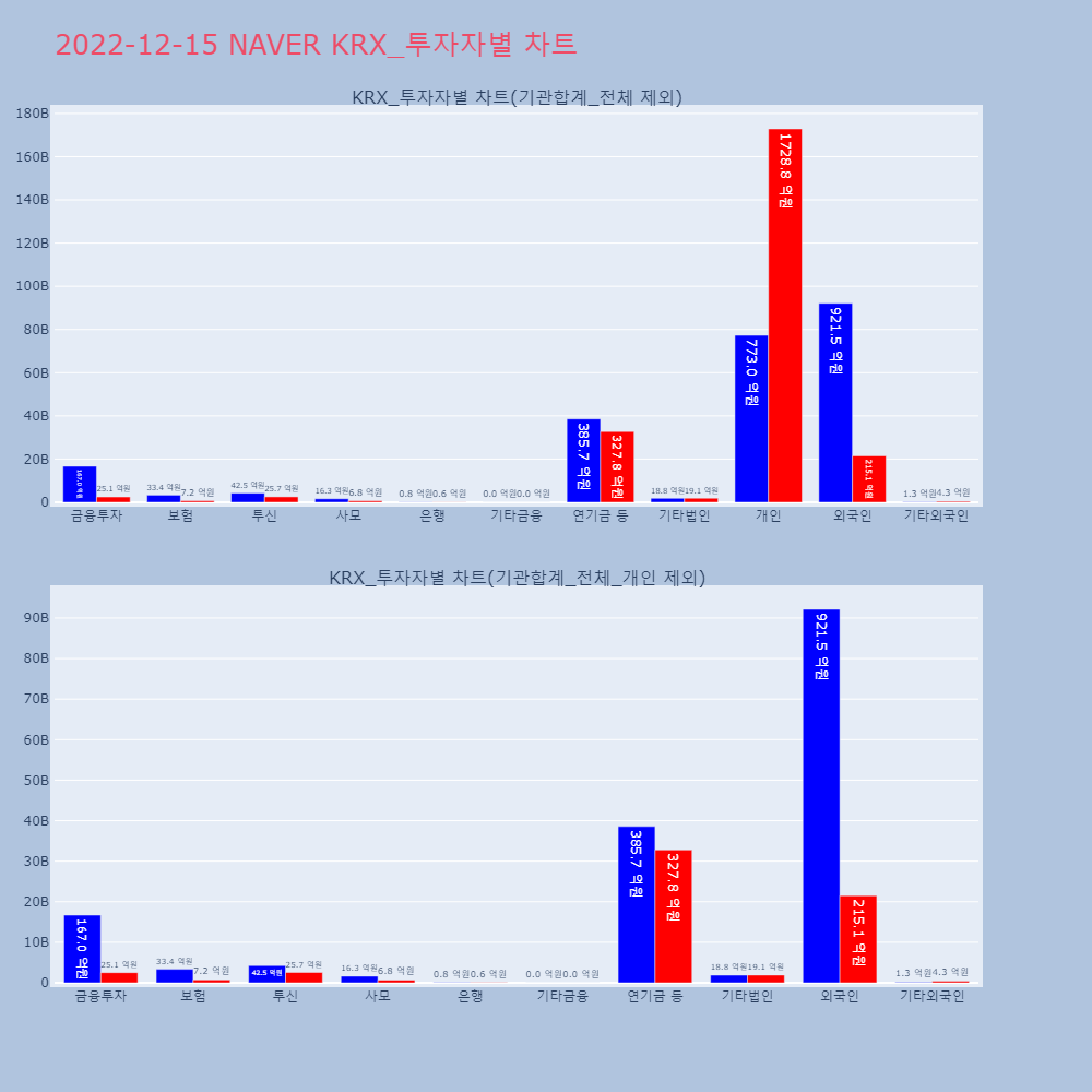 | 투자기관 | 매도량/금액(백) | 매수량/금액(백) | 순매수량/금액(백) |