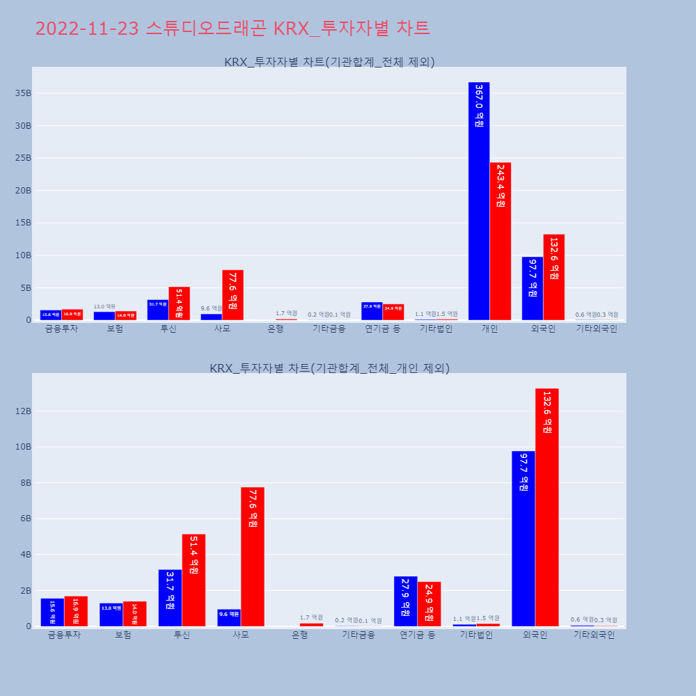 | 투자기관 | 매도량/금액(백) | 매수량/금액(백) | 순매수량/금액(백) |