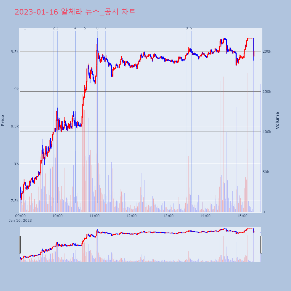 | 9 | 5월 2일 오전장 급등종목은? - 위지윅스튜디오, 이스트소프트, 중앙디앤엠.최적의 매매타이밍을 실시간으로 전송하여 투자자들에게 도 | 파이낸셜 | 호텔신라 | 2023-05-02 11:26:13 |