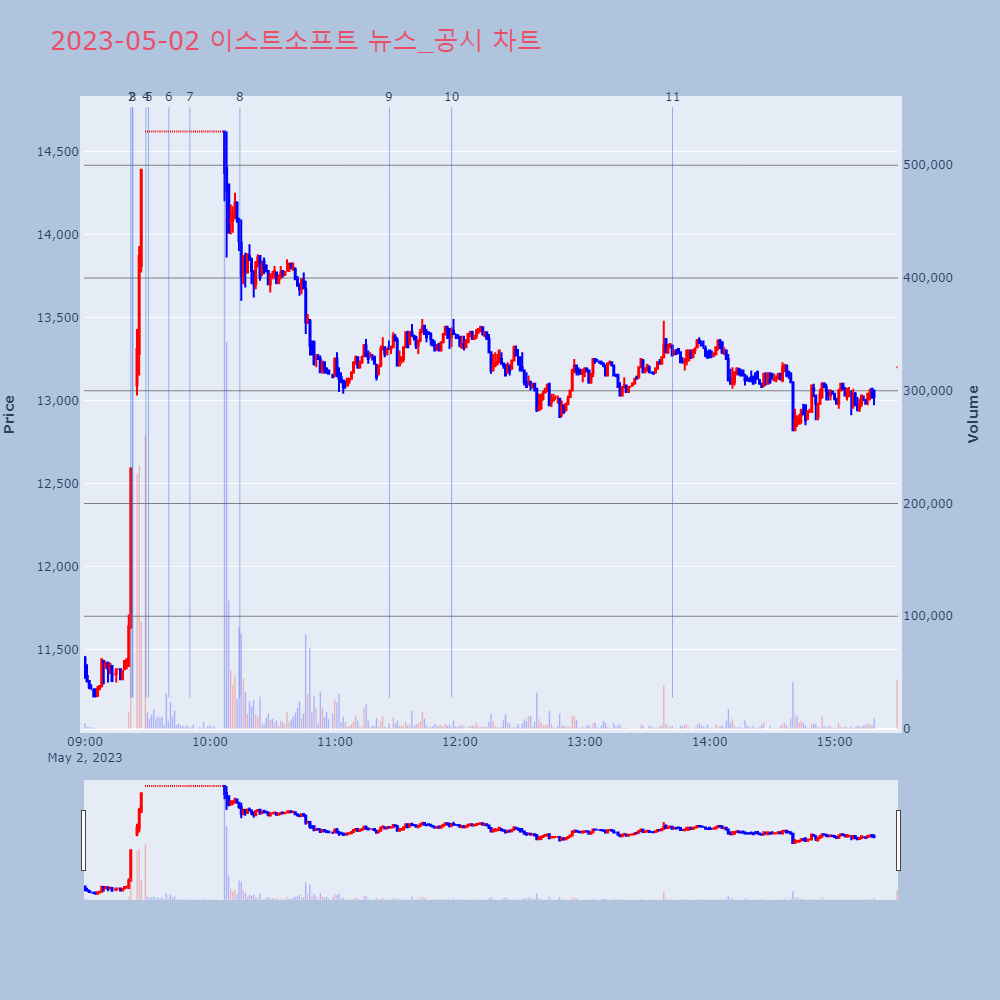 | 4 | 이스트소프트, +29.96% 상한가이스트소프트가 상한가를 기록했다. 전일 대비 29.96 | 조선경제 | 이스트소프트 | 2023-05-02 09:29:14 |