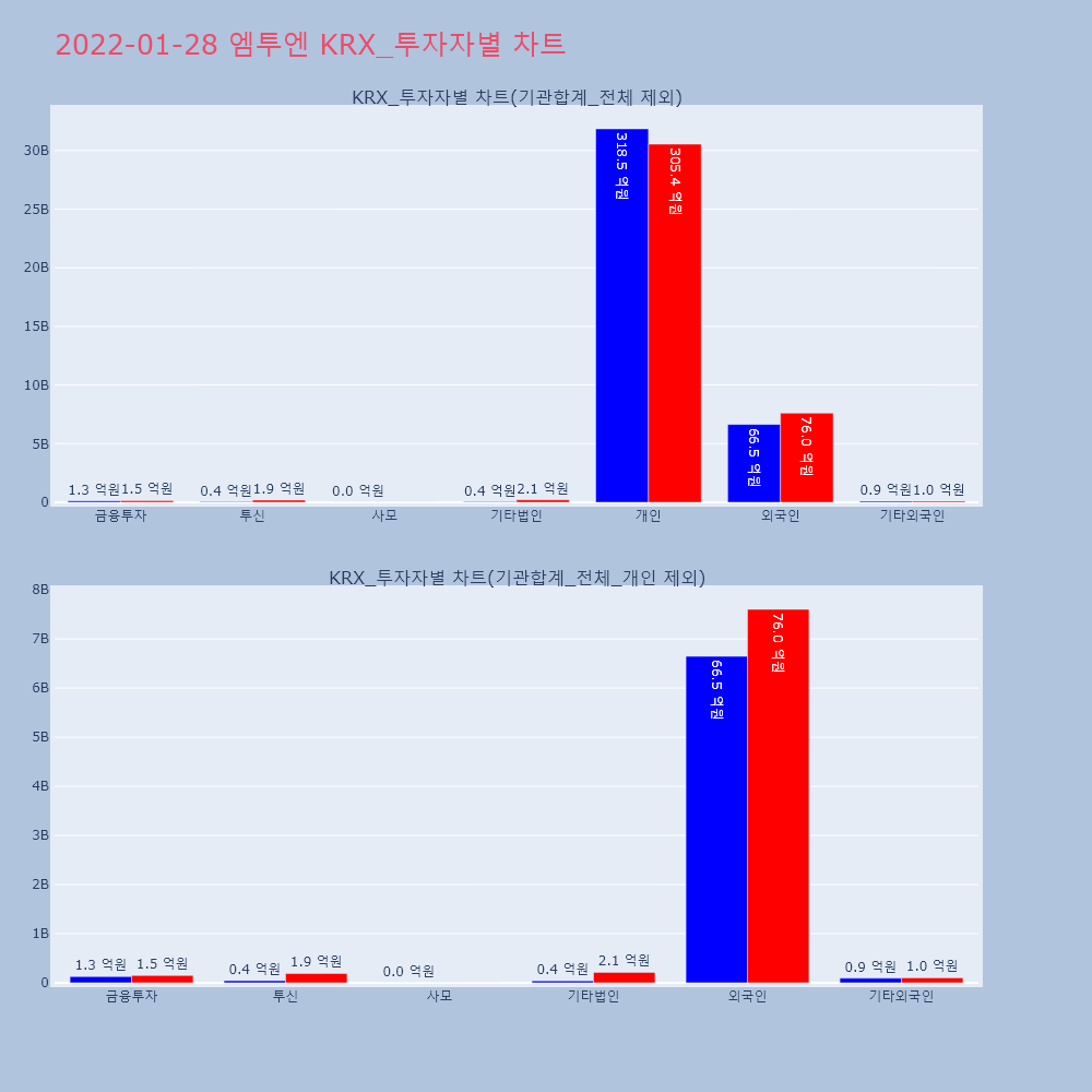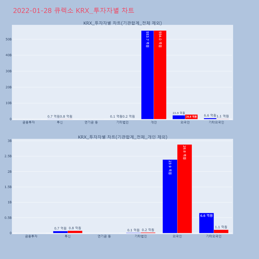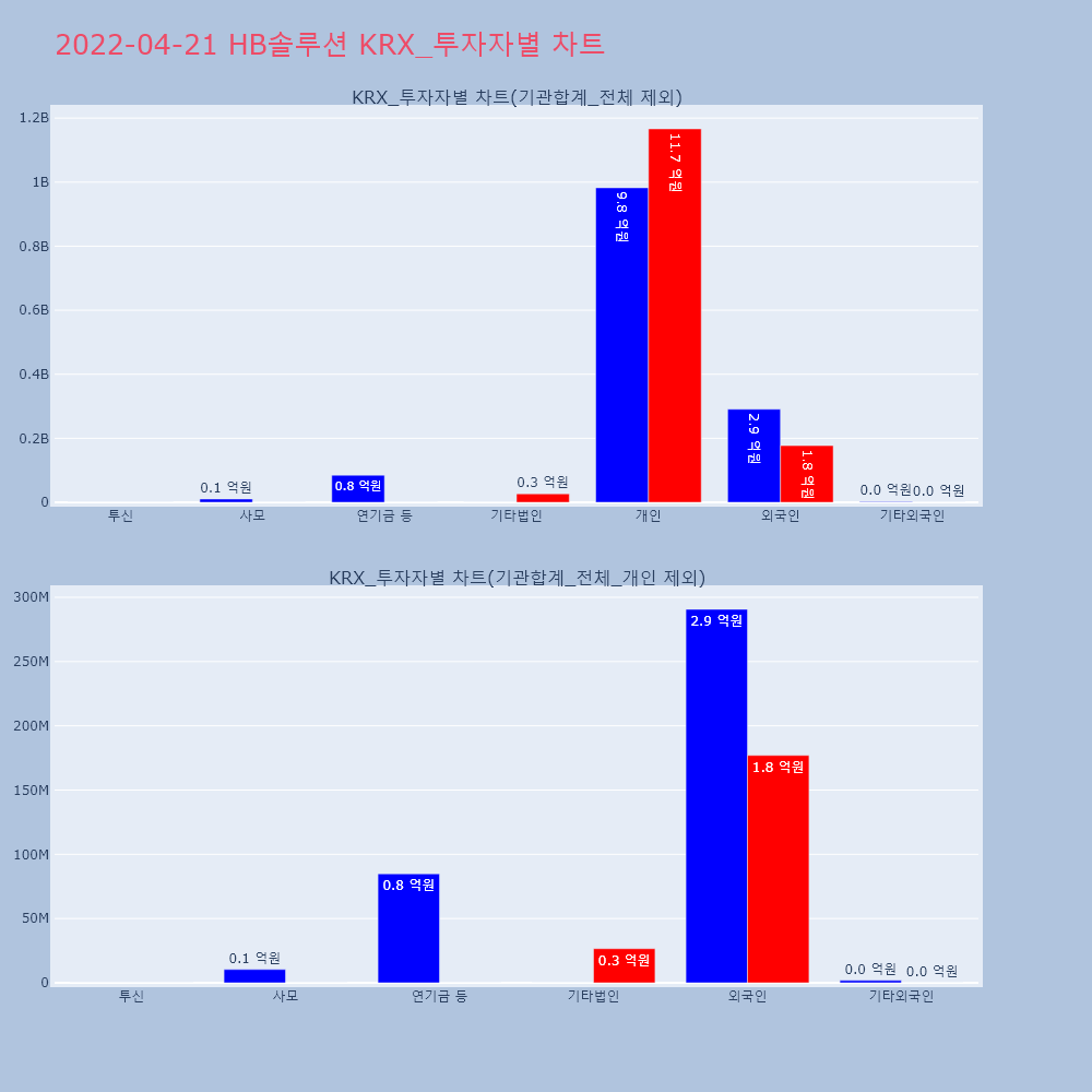 | 투자기관 | 매도량/금액(백) | 매수량/금액(백) | 순매수량/금액(백) |
