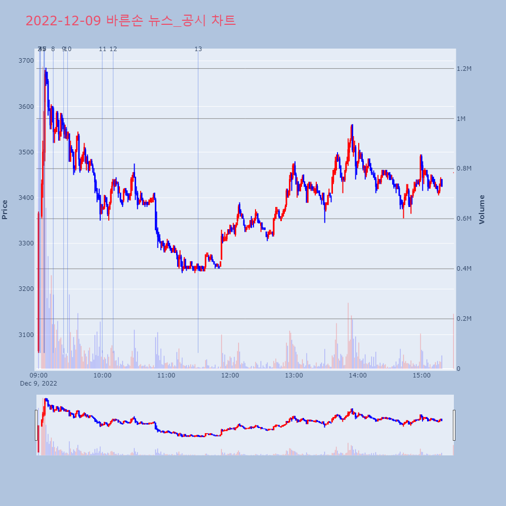 | 3 | [강세 토픽] 웹툰 테마, 디앤씨미디어 +9.58%, 키다리스튜디오 +4.74%[웹툰] 테마가 강세다. 전일 대비 2.75% 상승세이 | 조선경제 | 디앤씨미디어 | 2023-04-13 14:52:33 |