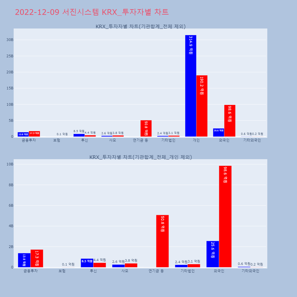 | 투자기관 | 매도량/금액(백) | 매수량/금액(백) | 순매수량/금액(백) |