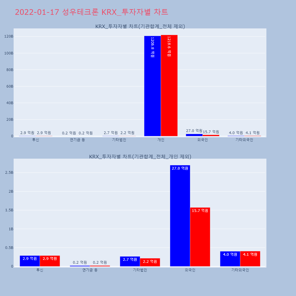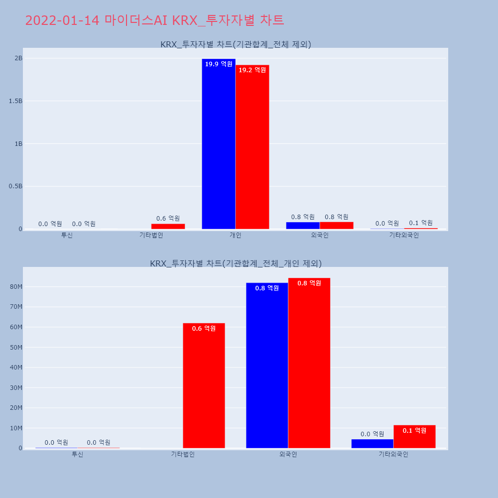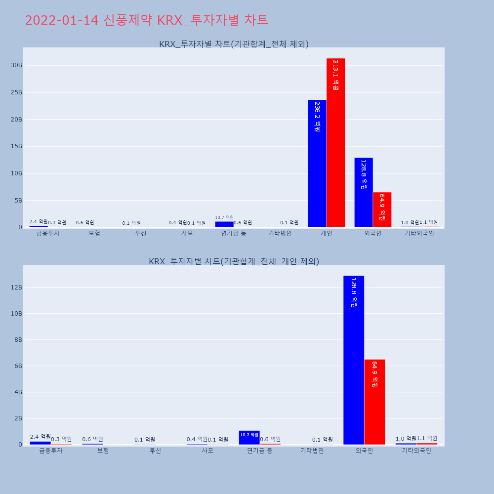 | 투자기관 | 거래량_매도 | 거래량_매수 | 거래량_순매수 | 거래대금_매도 | 거래대금_매수 | 거래대금_순매수 |