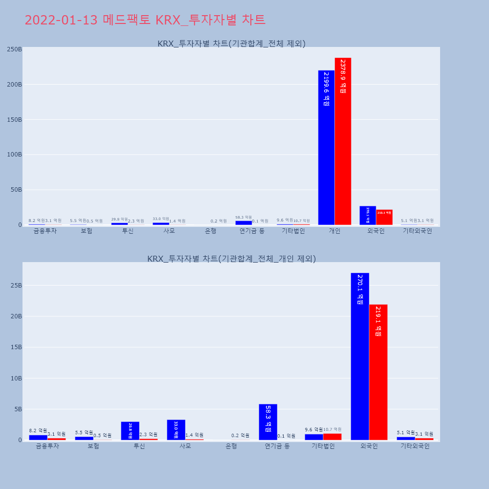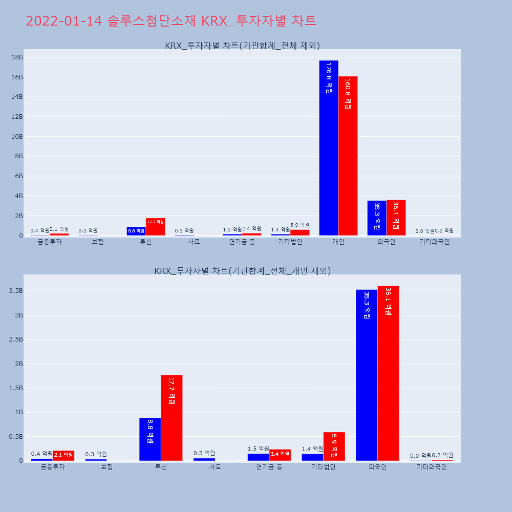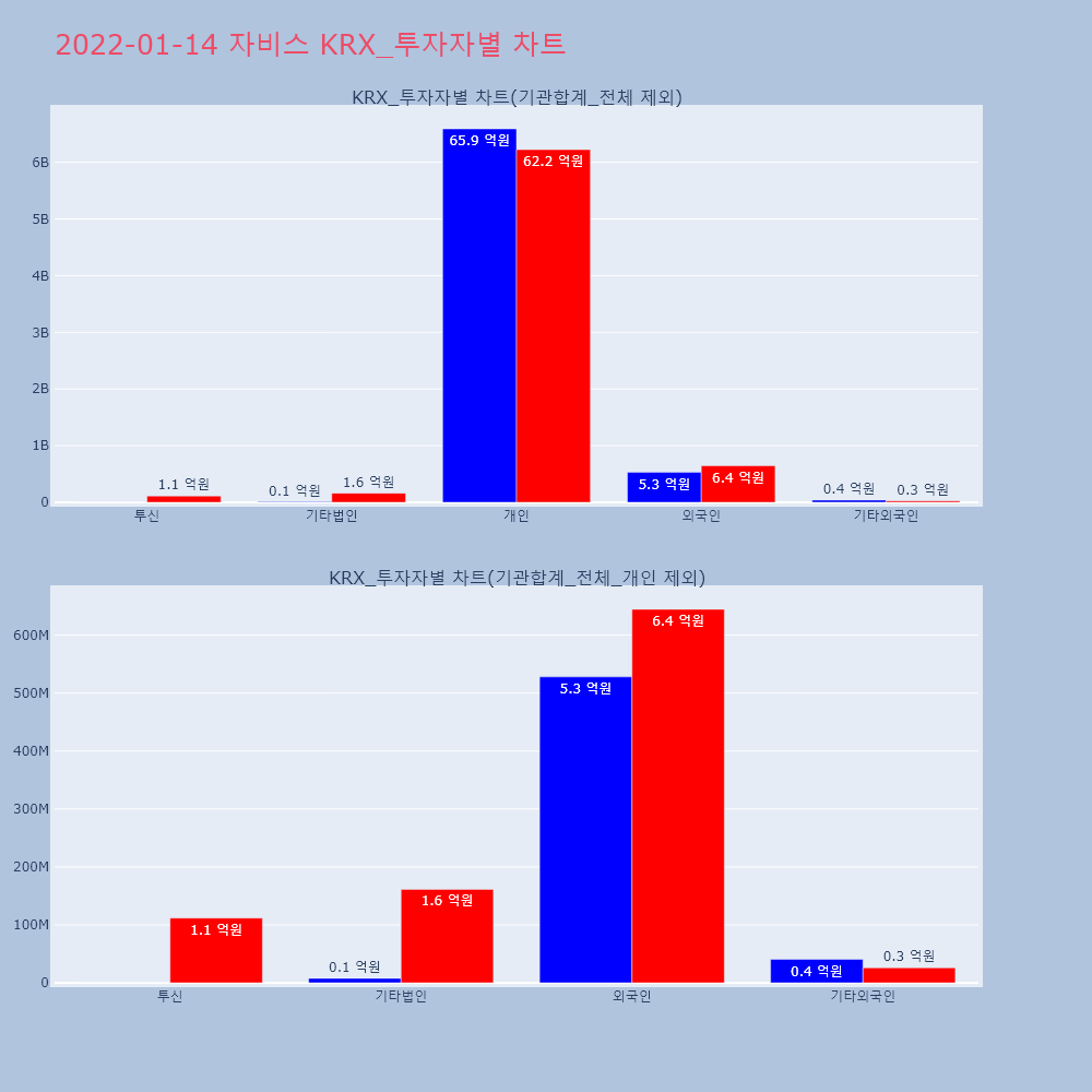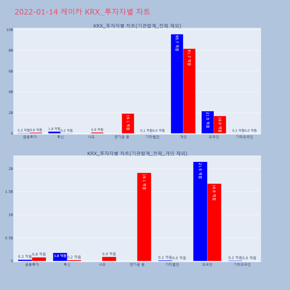 | 투자기관 | 거래량_매도 | 거래량_매수 | 거래량_순매수 | 거래대금_매도 | 거래대금_매수 | 거래대금_순매수 |