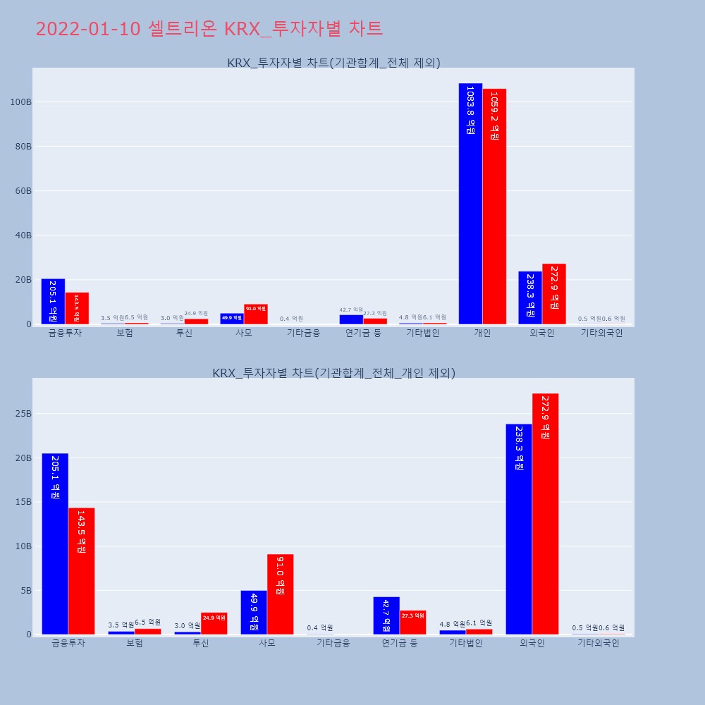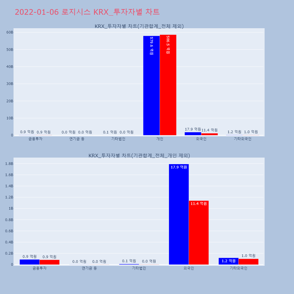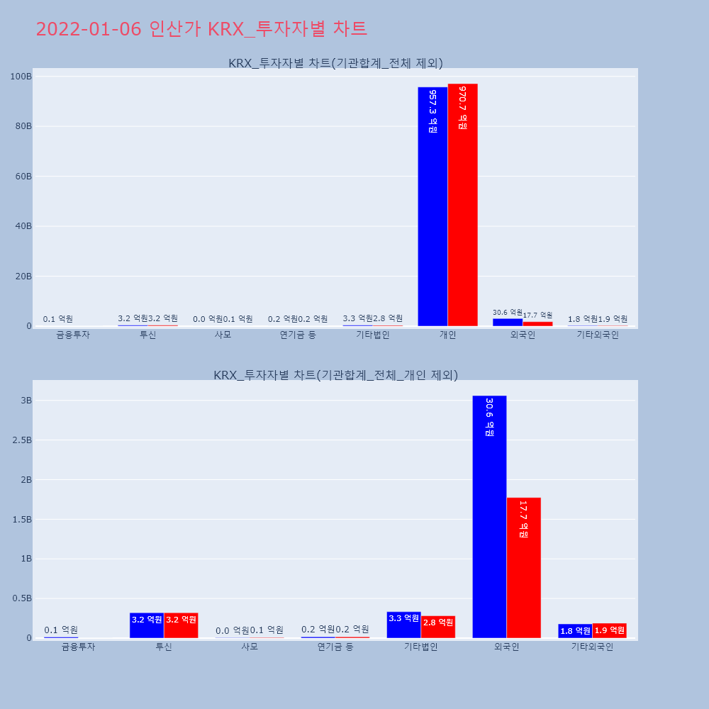 | 투자기관 | 거래량_매도 | 거래량_매수 | 거래량_순매수 | 거래대금_매도 | 거래대금_매수 | 거래대금_순매수 |
