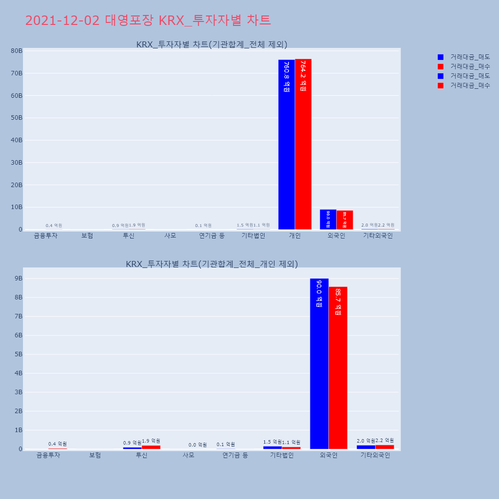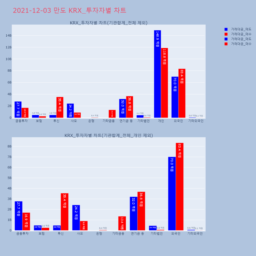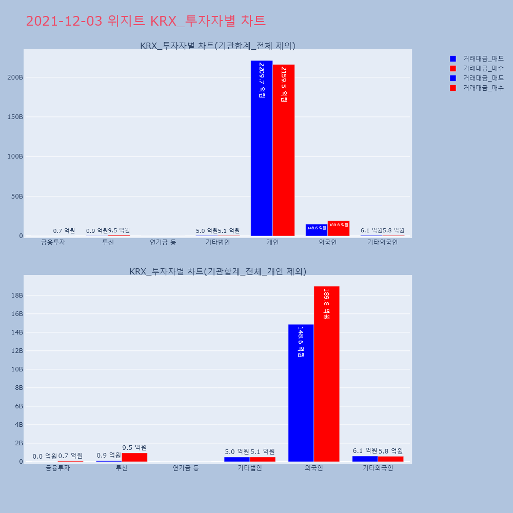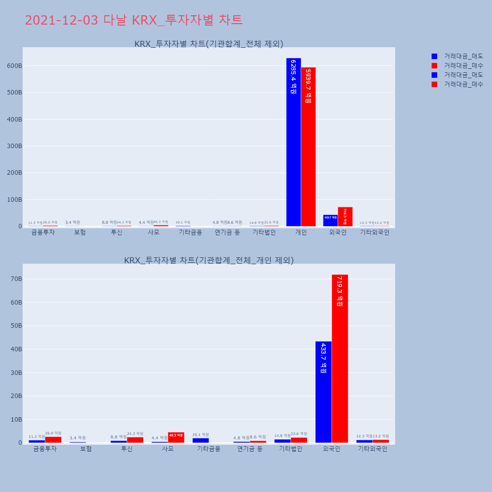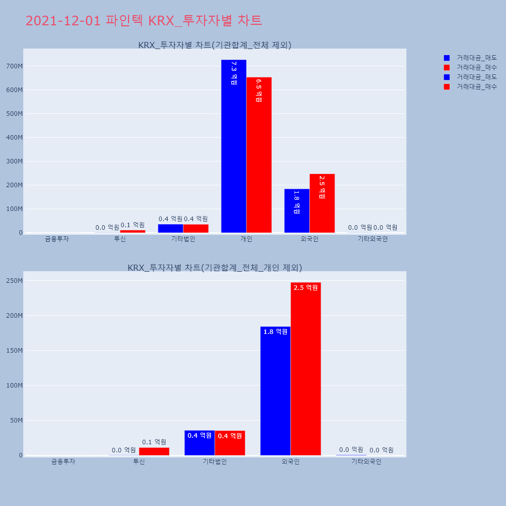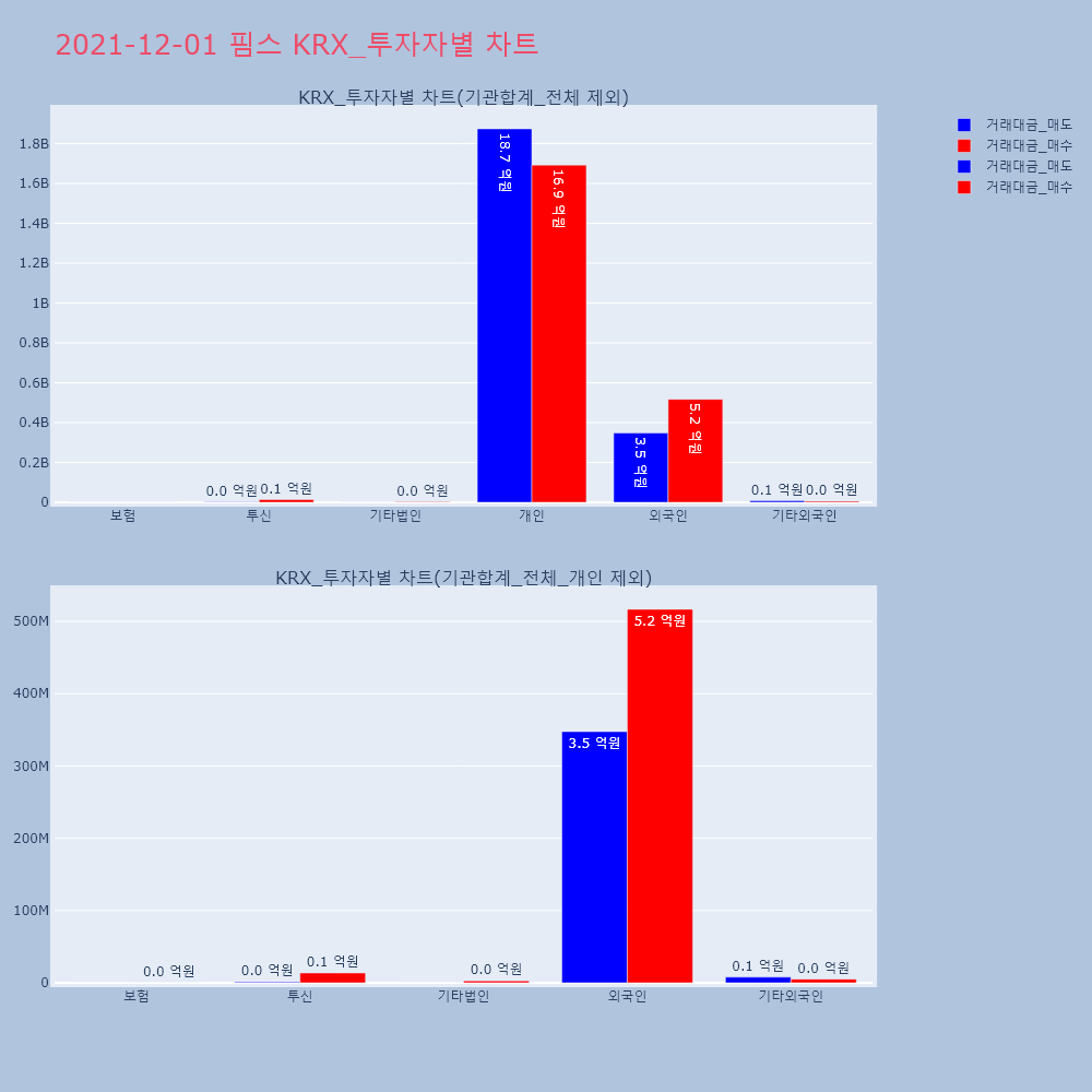 | 투자기관 | 거래량_매도 | 거래량_매수 | 거래량_순매수 | 거래대금_매도 | 거래대금_매수 | 거래대금_순매수 |