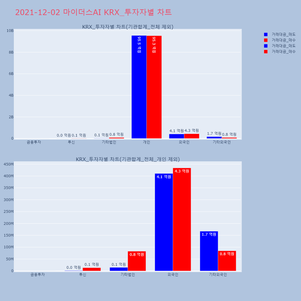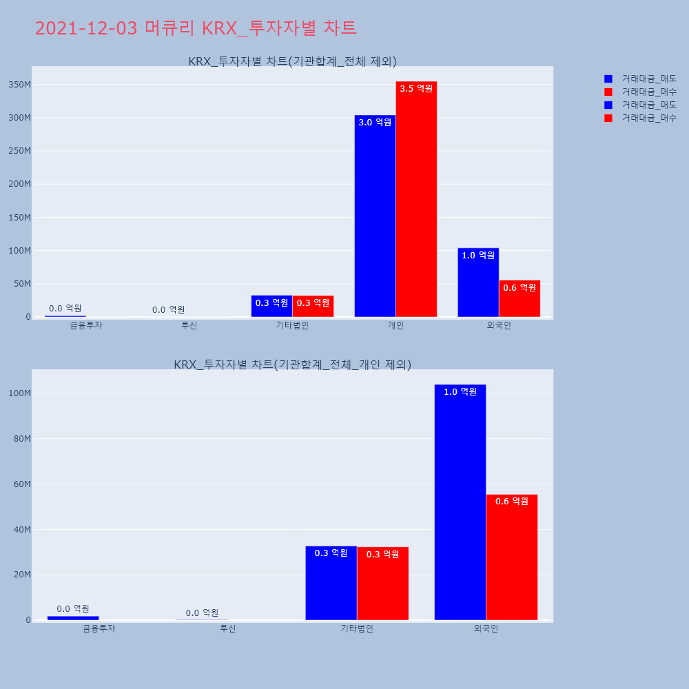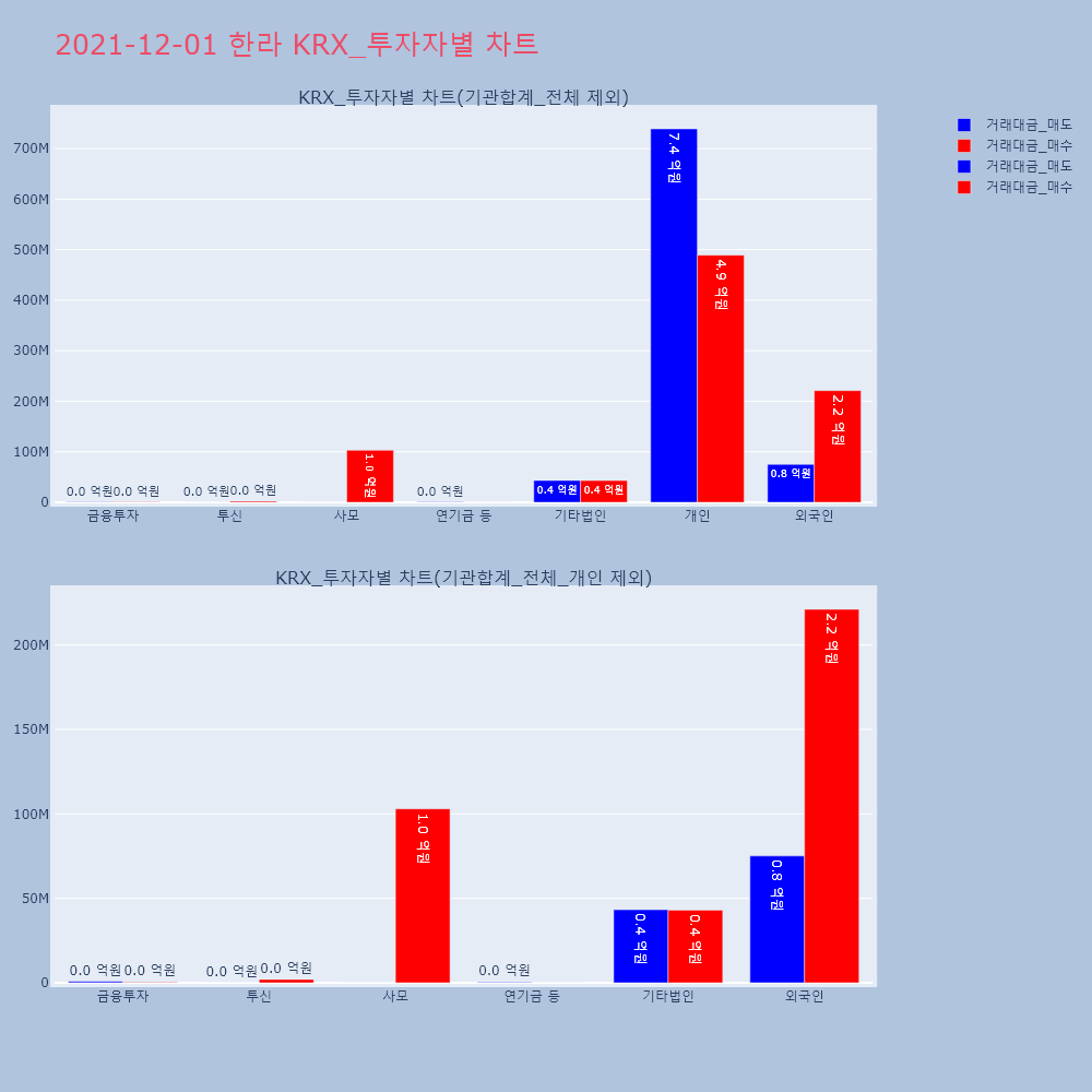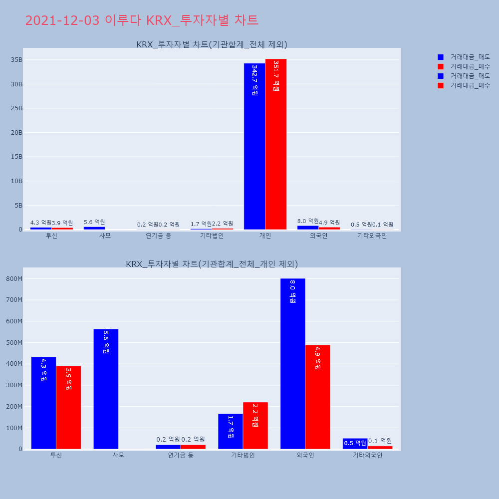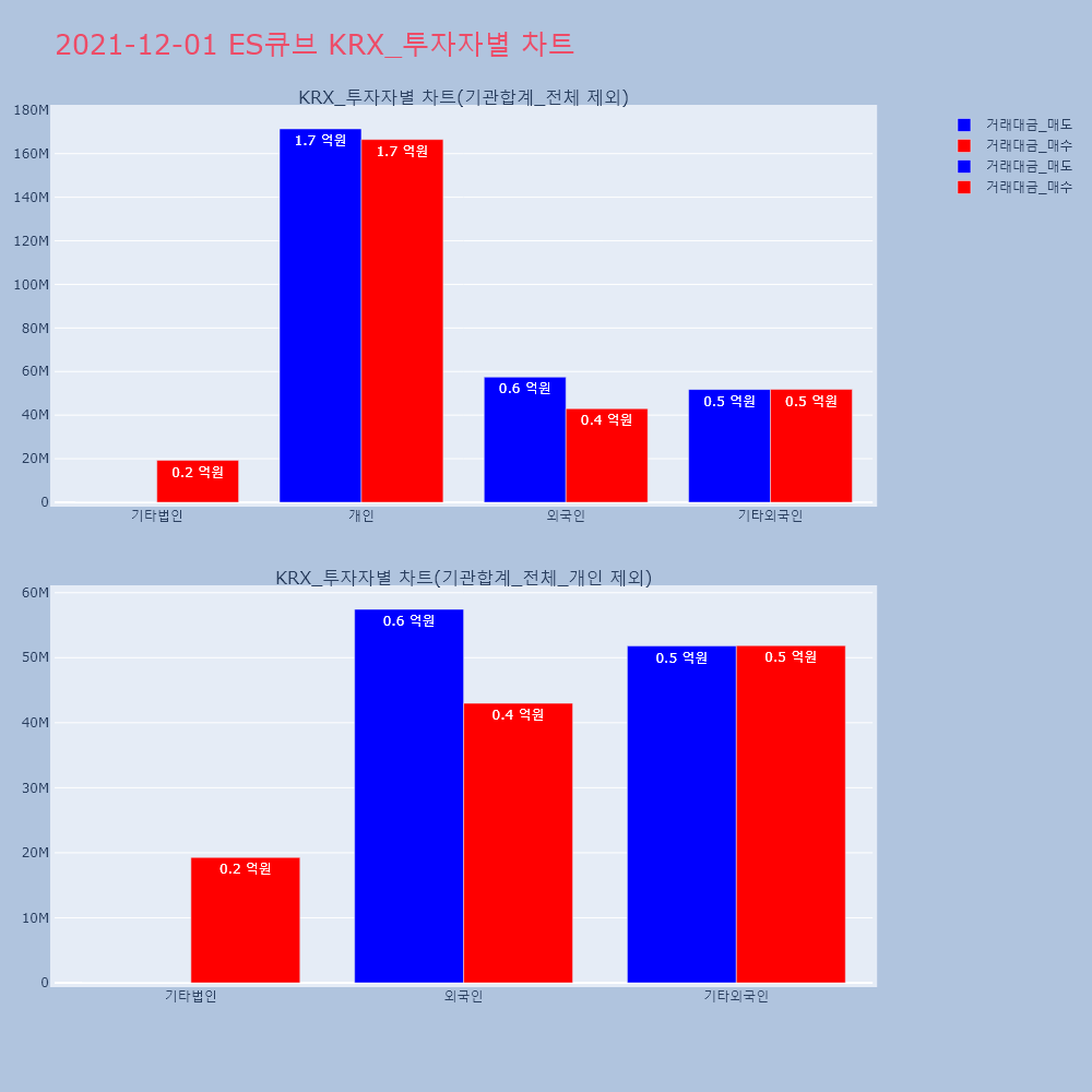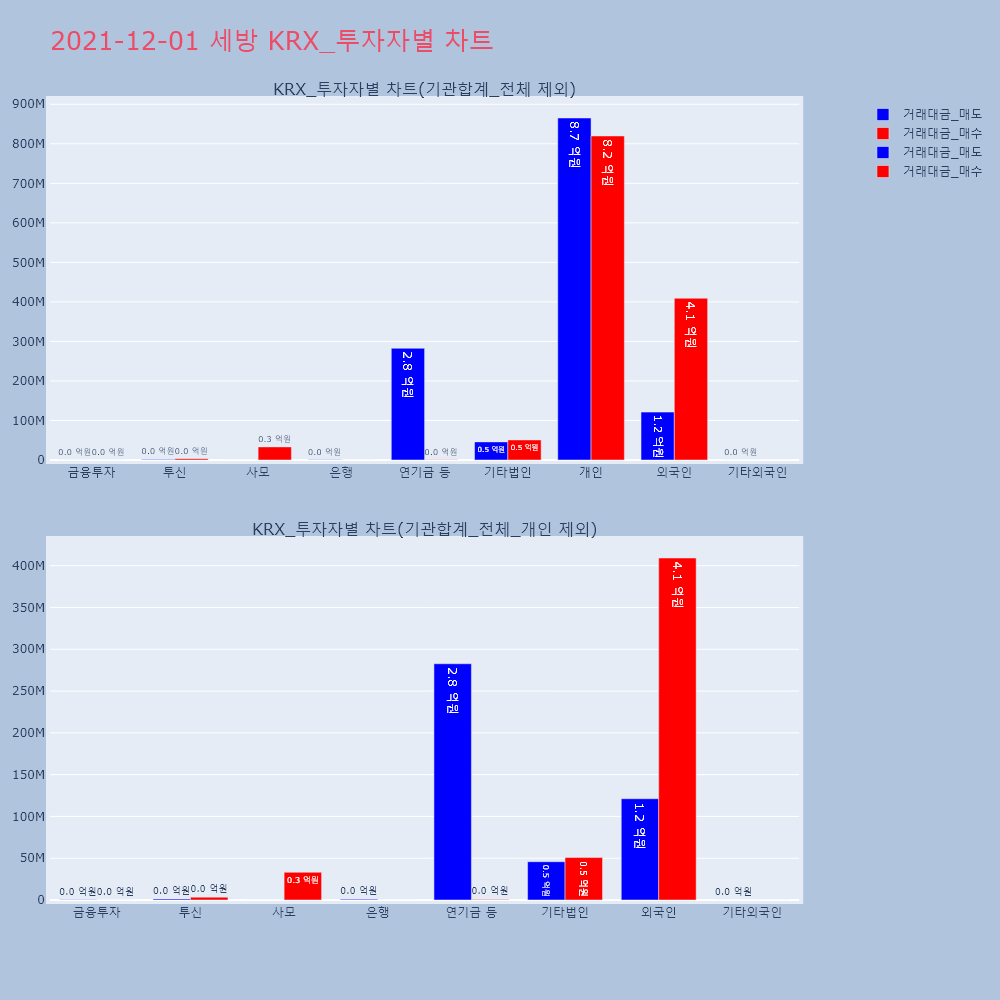 | 투자기관 | 거래량_매도 | 거래량_매수 | 거래량_순매수 | 거래대금_매도 | 거래대금_매수 | 거래대금_순매수 |