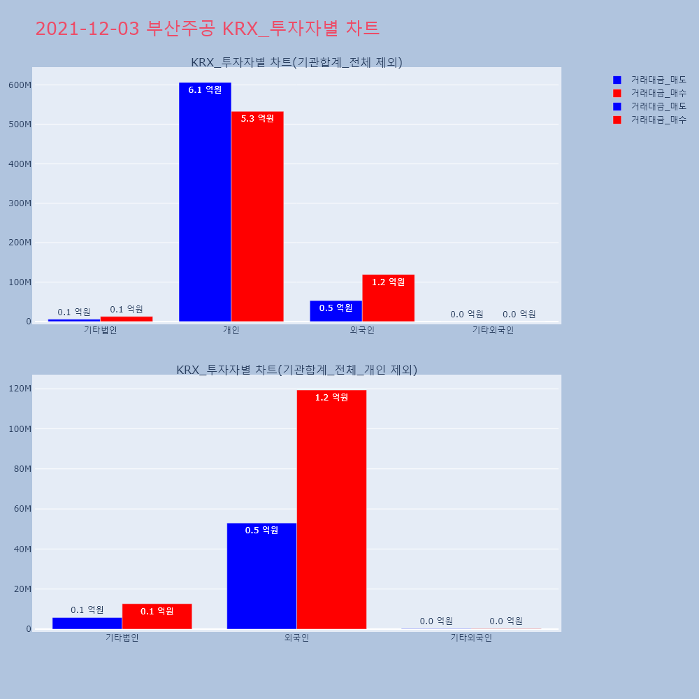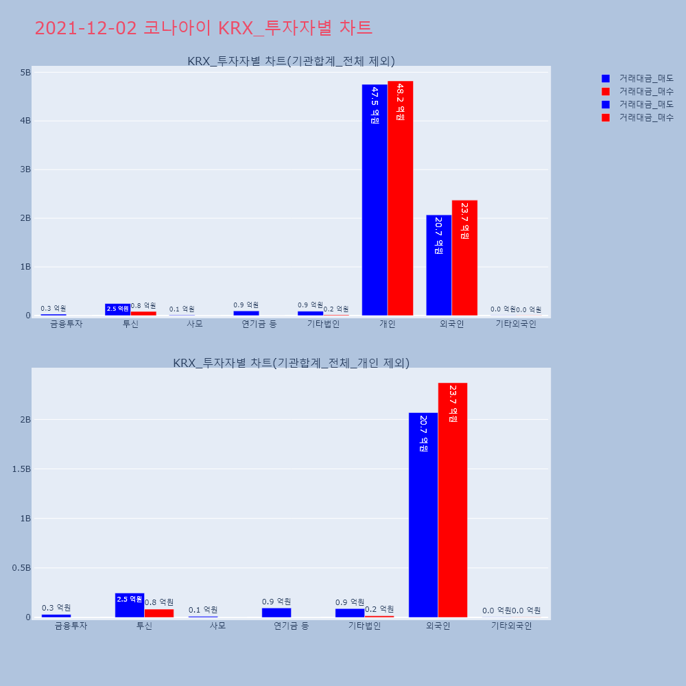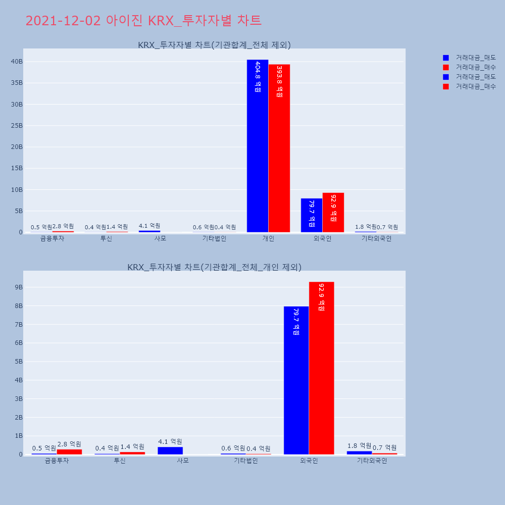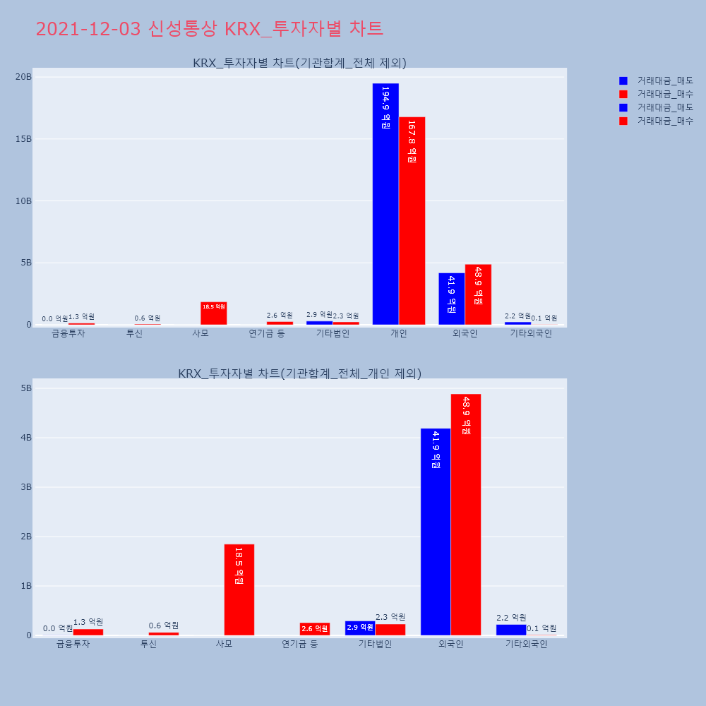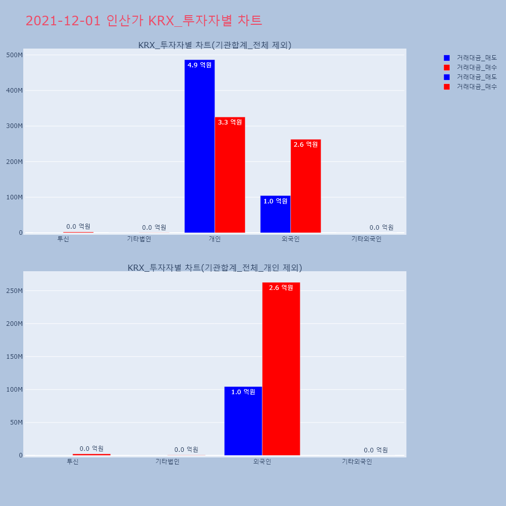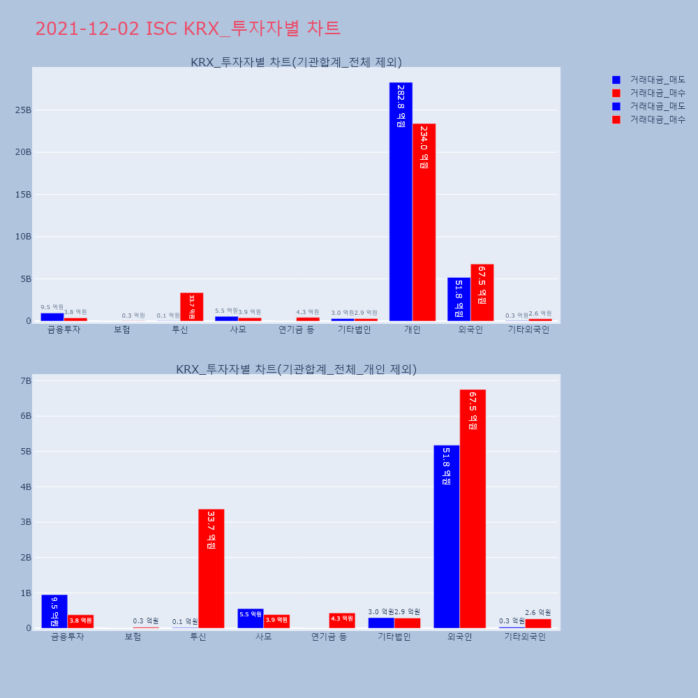 | 투자기관 | 거래량_매도 | 거래량_매수 | 거래량_순매수 | 거래대금_매도 | 거래대금_매수 | 거래대금_순매수 |