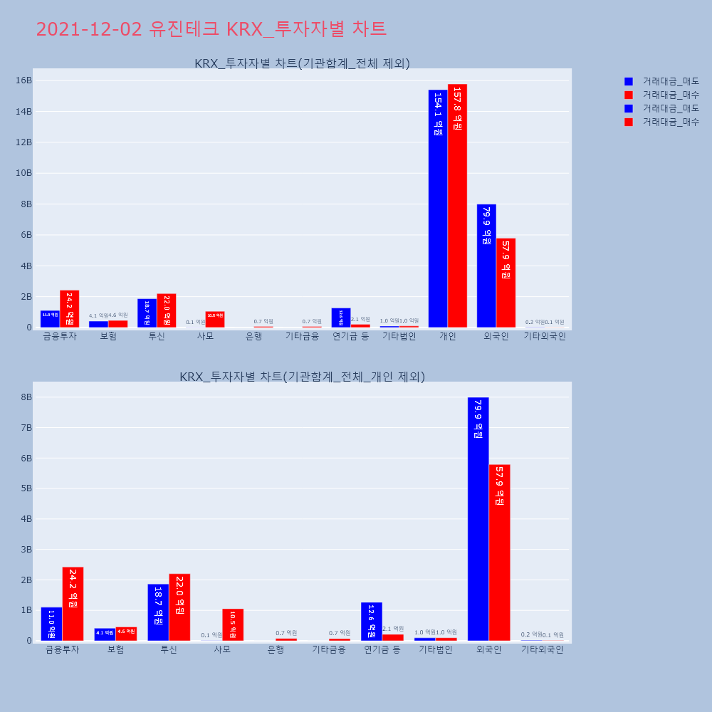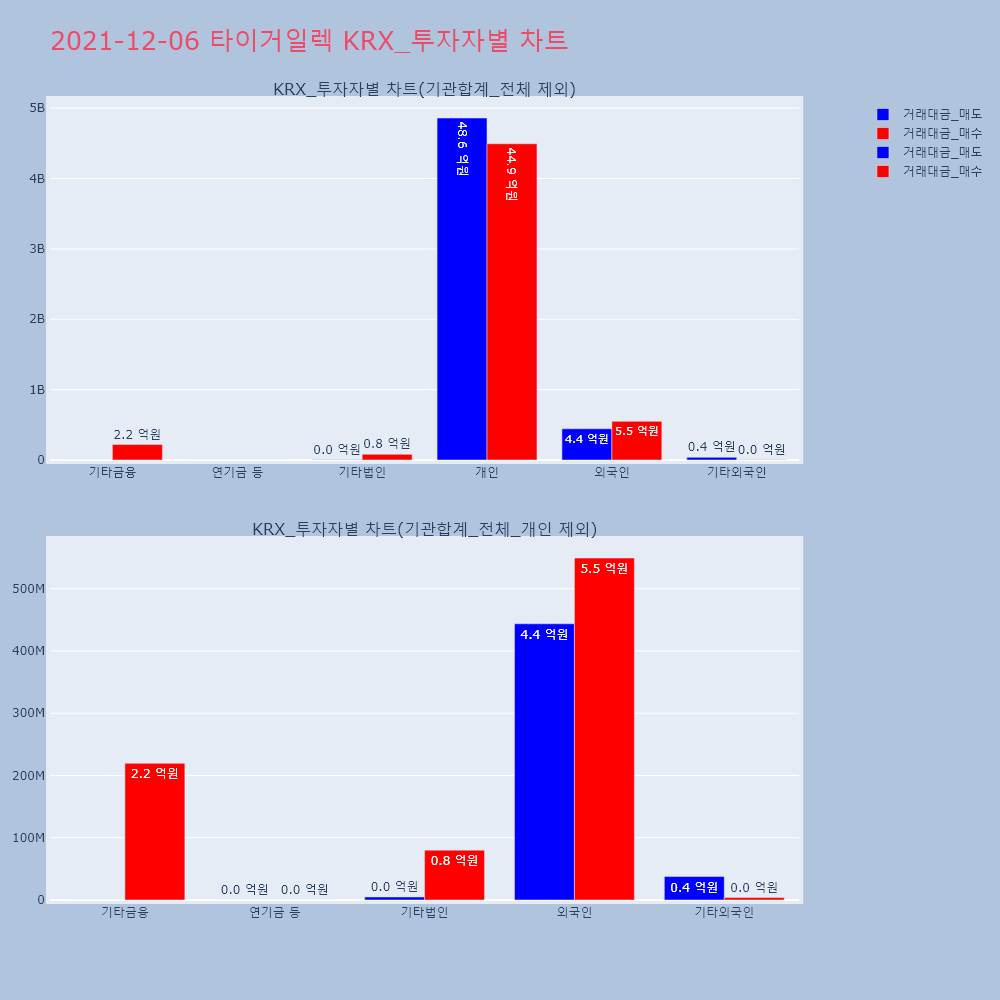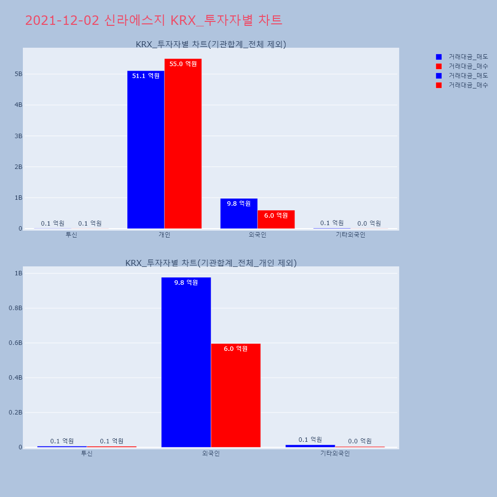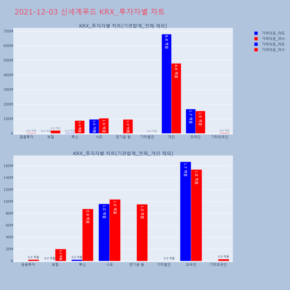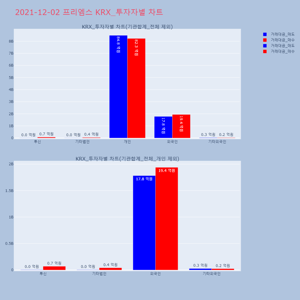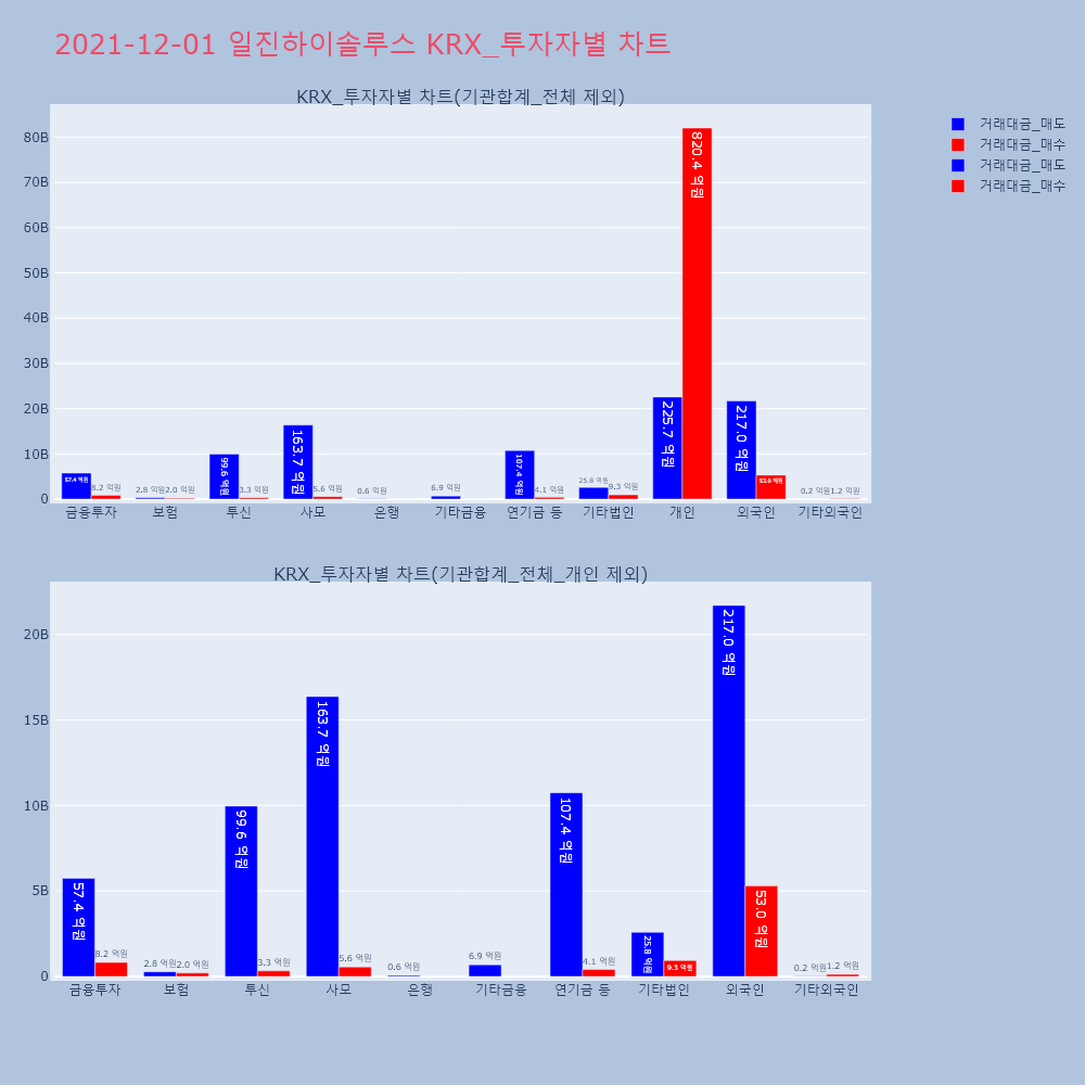 | 투자기관 | 거래량_매도 | 거래량_매수 | 거래량_순매수 | 거래대금_매도 | 거래대금_매수 | 거래대금_순매수 |