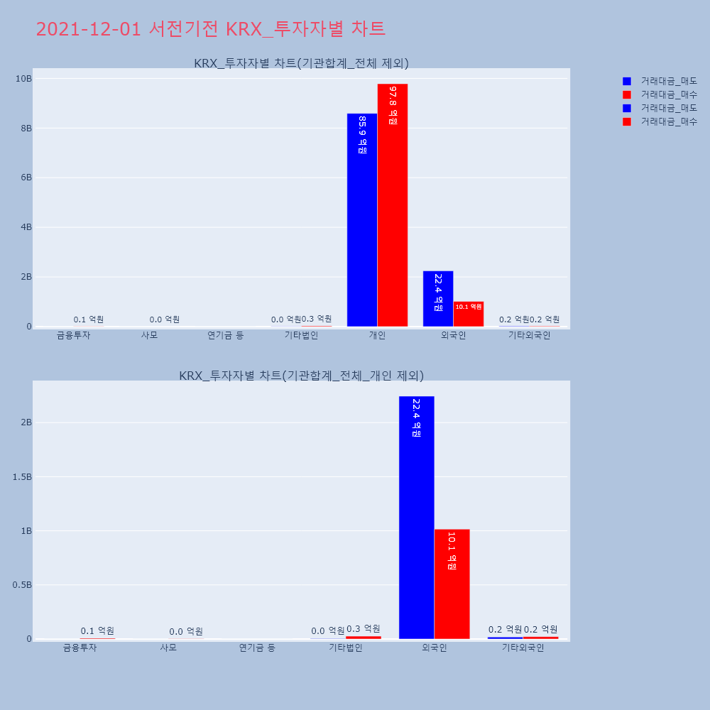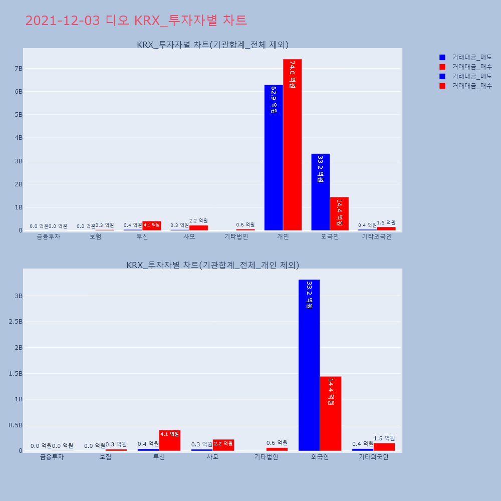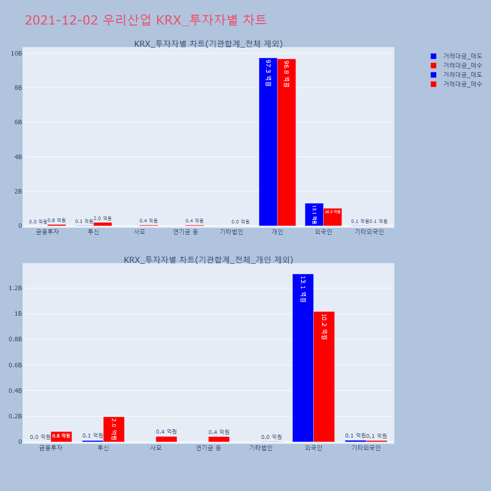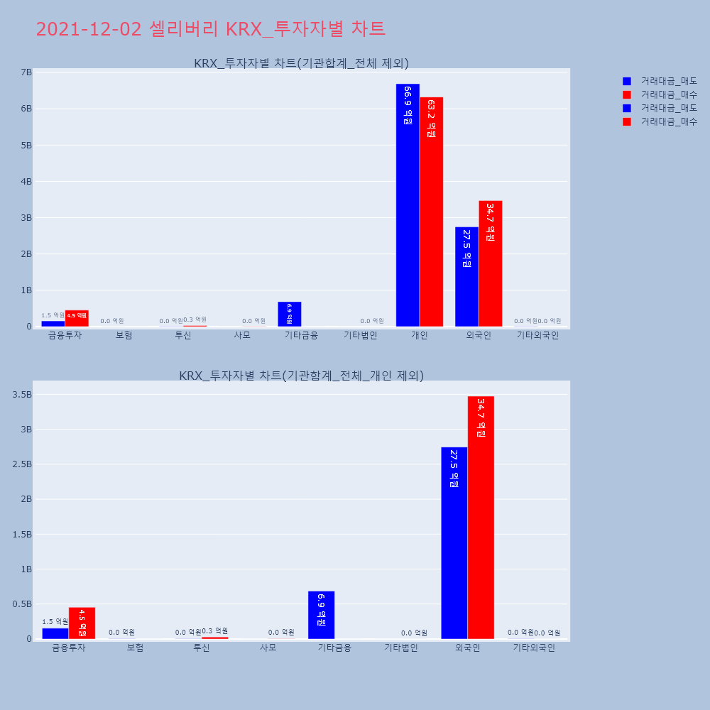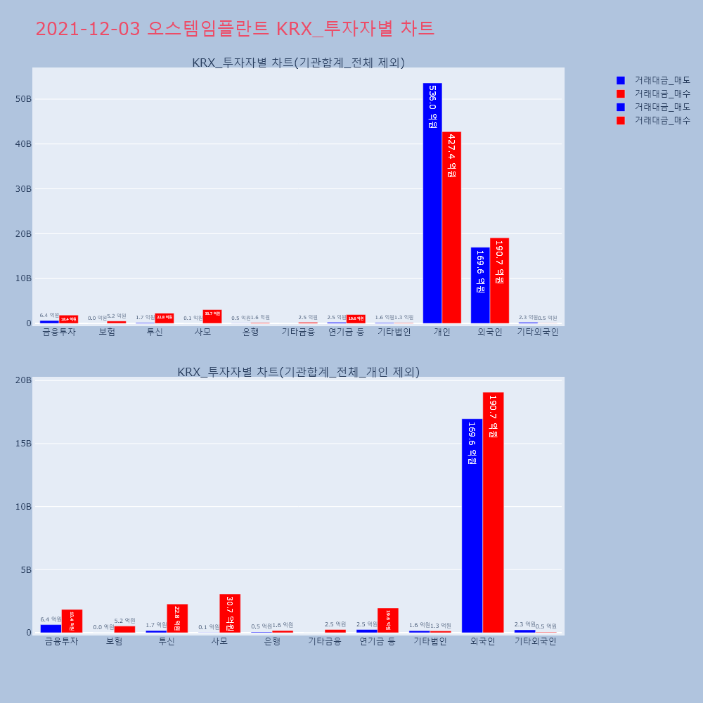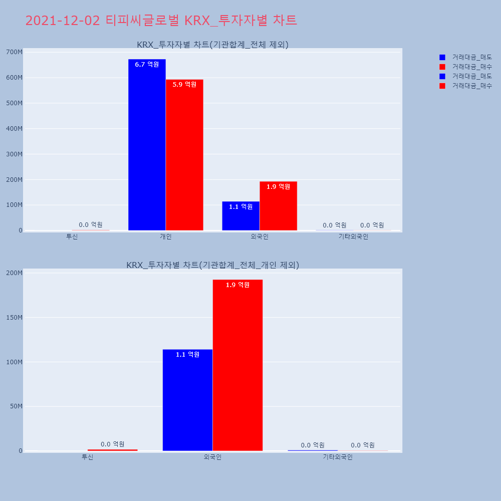| 투자기관 | 거래량_매도 | 거래량_매수 | 거래량_순매수 | 거래대금_매도 | 거래대금_매수 | 거래대금_순매수 |